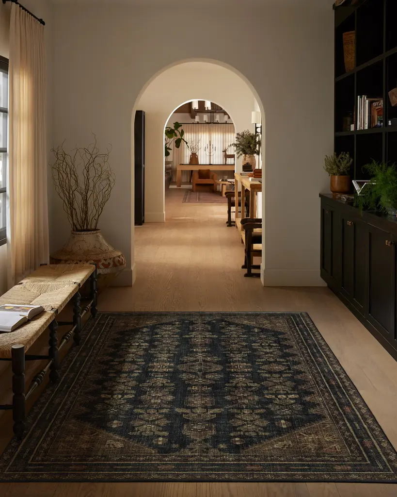 Meet your most decadent room accent yet. The Pradera Soft Black & Brown Rug is filled with warm, dark chocolate brown tones with hints of red. Inspired by antique Persian rugs from the Zagros Mountains, this rug manages to stand out while complementing any space, echoing the interpretation of the natural world. Water-resistant, stain-resistant, and machine-washable. Colors may vary by device and lighting.