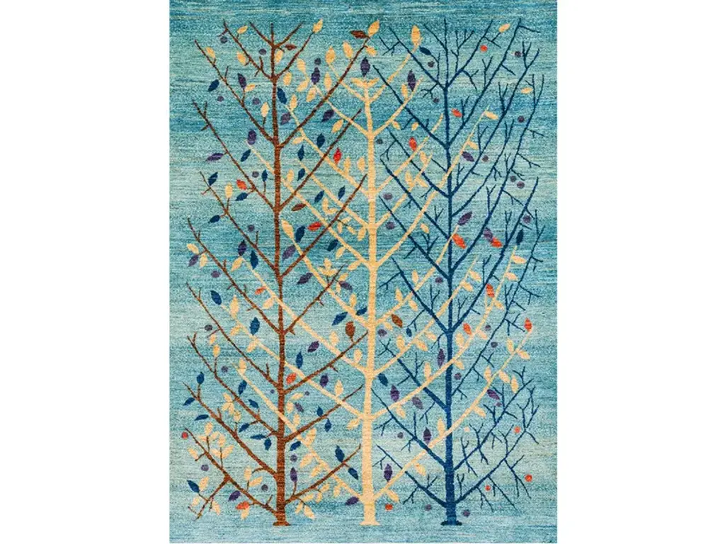 Prancing Tree of Life - Spring is a rectangular wool rug.Zollanvari Super Fine Gabbehs.Trees, flowers and animals (principally lions) are design themes that are used by tribal women to weave some of Zollanvari’s most original Gabbehs. The weavers are given patterns and colour ranges (often inspired by ancient and archaic patterns such as the ‘Tree of Life’) but have a free hand in producing these works of woven art using their imaginations and the traditional design vocabulary passed down through each new generation of weavers. This makes each Gabbeh unique and individual. Flora & Fauna design Gabbehs are also available in Zollanvari Super Fine (Kashkuli, Luribaft and Bulurbaft) and Zollanvari Fine qualities.The designs are available in custom and bespoke sizes and colours.