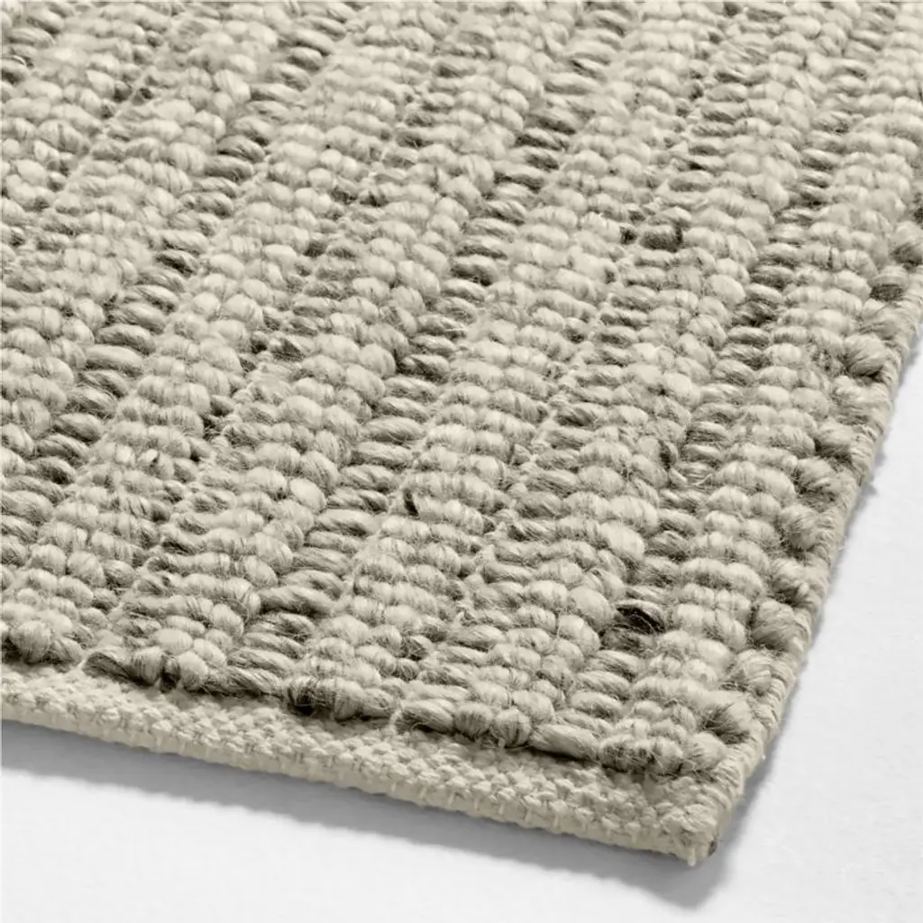 Our Prato area rug is all about the texture. Undyed wool is woven by hand into nubby lengths, which are bound side by side in sturdy stripes. Viscose adds its lovely sheen, while a bit of performance fiber increases durability, binds the yarns together and reduces shedding. The naturally hued grey wool with hints of tan and cream creates depth, dimension and subtle variation in this elevated rug. Use Prato to dress up your entryway or other high-traffic areas.Try it on first. Because color representation may vary by screen, using a swatch is an easy way to see exactly how your favorite rugs will look in your home. Our rug swatches ship free and can be returned online or at any store for a full refund.6'x9' rugs and 8'x10' rugs can be ordered online and picked up in a store near you. It's fast, easy and free.For larger rugs, order online and arrange a convenient delivery or warehouse pickup.