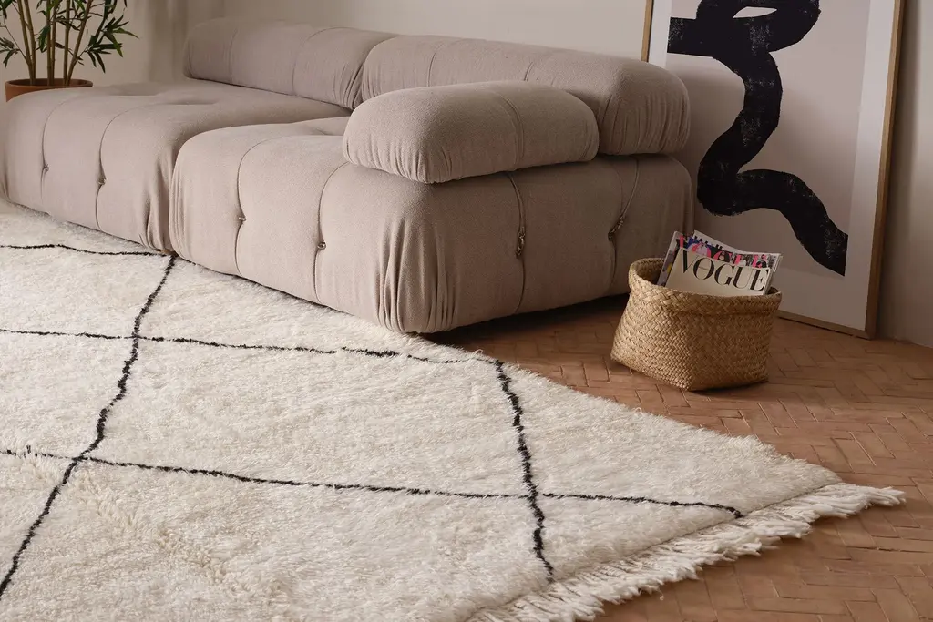 Our Moroccan pieces are each one-of-a-kind. Much of our collection was woven between 30 and 100 years ago, and curated by us. Other rugs in our collection are fresh off the loom and made with traditional techniques. Moroccan rugs don’t come with a key. As with any painting or poem, their motifs have many subjective interpretations. Originally made for personal use, these rugs took months to weave, documenting a shifting tide of events and emotions in the weaver’s life.