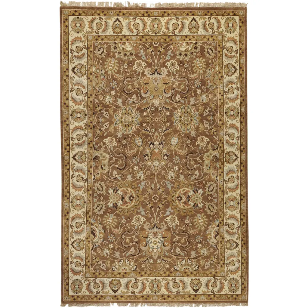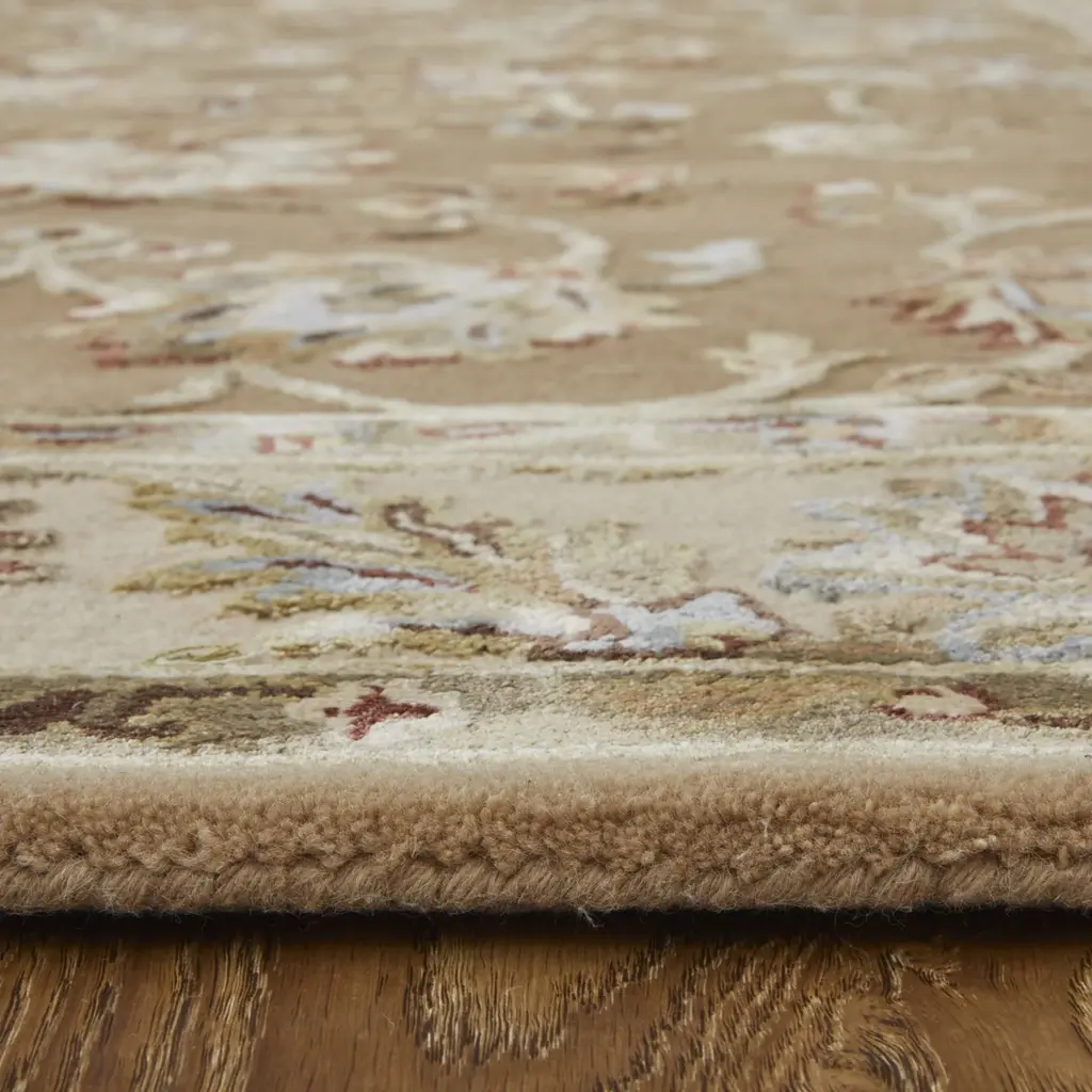 Collection: Prescott Colors: Tan, Ivory Construction: Hand Tufted Material: Face: Viscose, Wool / Warp: Cotton Pile: Medium Pile Pile Height: 0.6" Styles: Traditional,French & Victorian,Bohemian & Eclectic Backing: Cotton Made In: India Thickness: 0.6" Price Range: $$$$$ (Premium)