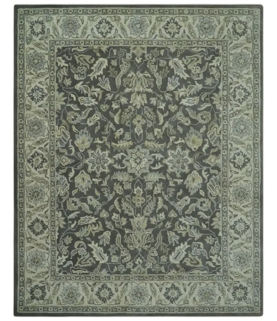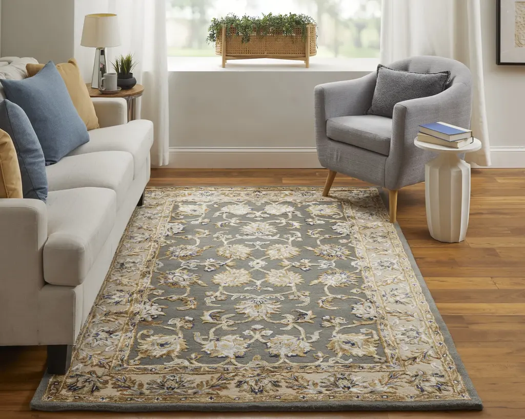 Collection: Prescott Colors: Taupe, Tan, Ivory Construction: Hand Tufted Material: Face: Viscose, Wool / Warp: Cotton Pile: Medium Pile Pile Height: 0.6" Styles: Traditional,French & Victorian,Bohemian & Eclectic Backing: Cotton Made In: India Thickness: 0.6" Price Range: $$$$$ (Premium)