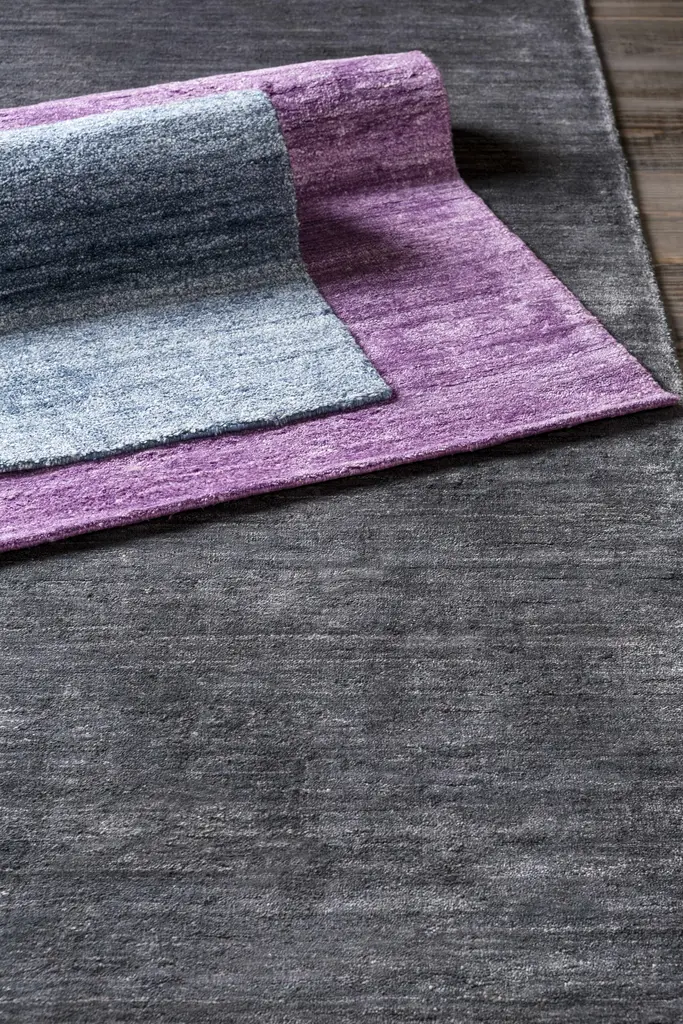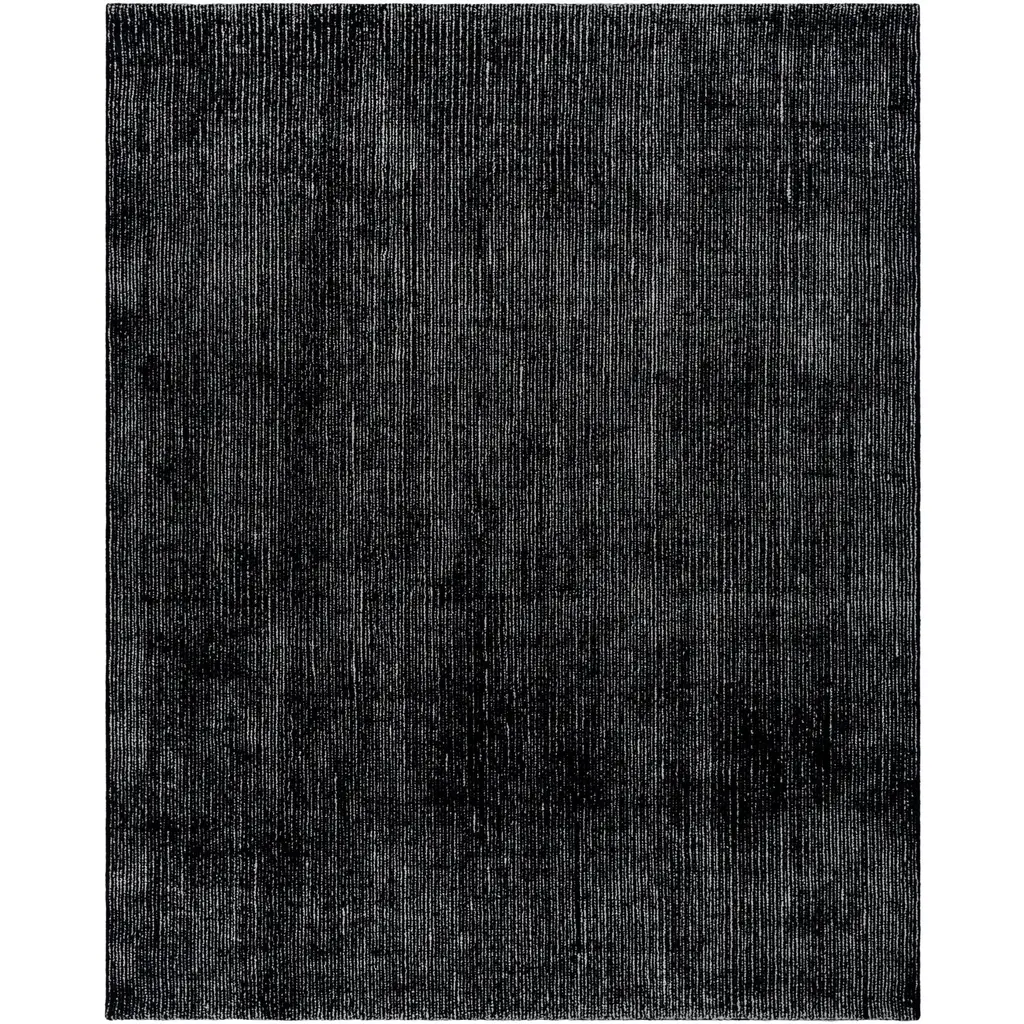 Collection: Presto Colors: Black Construction: Hand Loomed Material: 100% Viscose Pile: High Pile Pile Height: 0.62" Styles: Solid & Striped Made In: India Thickness: 0.7" Price Range: $$$$$ (Affordable)