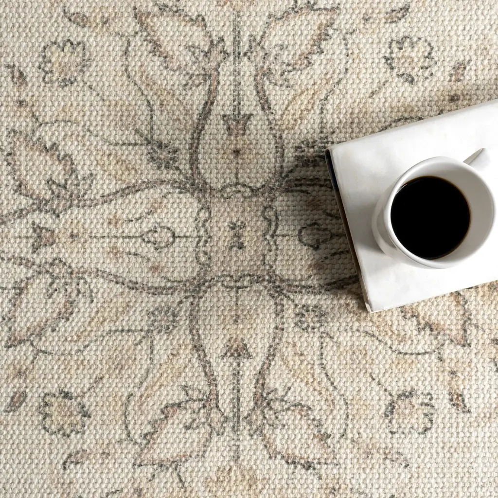Present a sophisticated, royal look with the Princesa Medallion Wool and Cotton Rug. Featuring a traditional design and delicate, sandy tones, it feels both timeless and inviting. The palette lends warmth to any room, while the intricate motif cultivates a sense of luxurious style. Crafted from natural materialswool and cottonthis rug delivers an ultra-soft feel underfoot and brings magical charm to your space for the fairy tale finish you've been after.