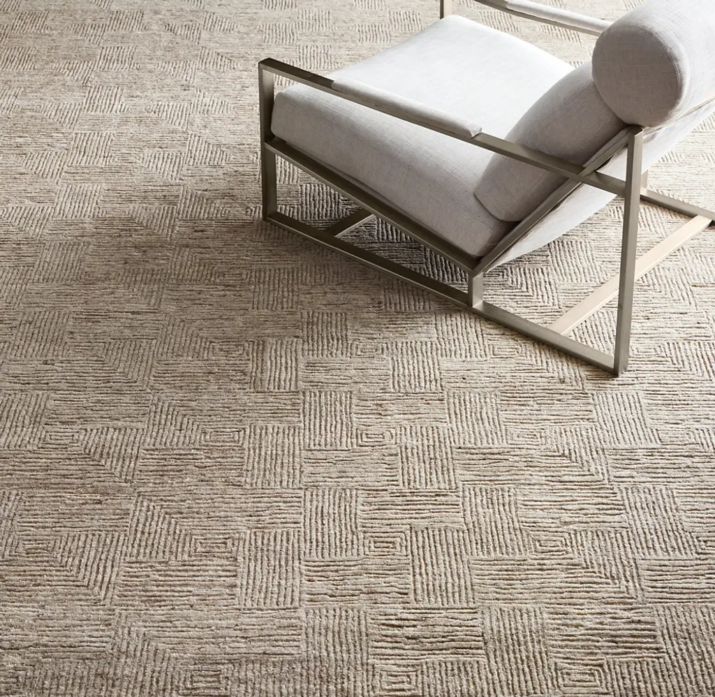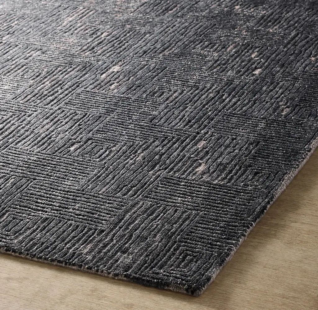 Sculpted into a maze of intertwining squares, our Prism rug creates a visual illusion. Spun from premium New Zealand wool and silken viscose for softness and subtle sheen, the rug is distinctive for its high-low pile, tonal shades and randomly hand-cut variations.