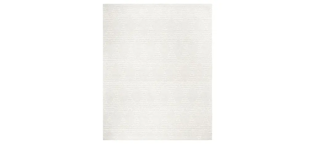 A subtle, geometric design. Our Prisma Monochrome Rug features an overlapping hexagonal motif on a neutral cream background. Water-resistant, stain-resistant, and machine-washable.