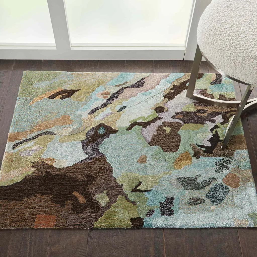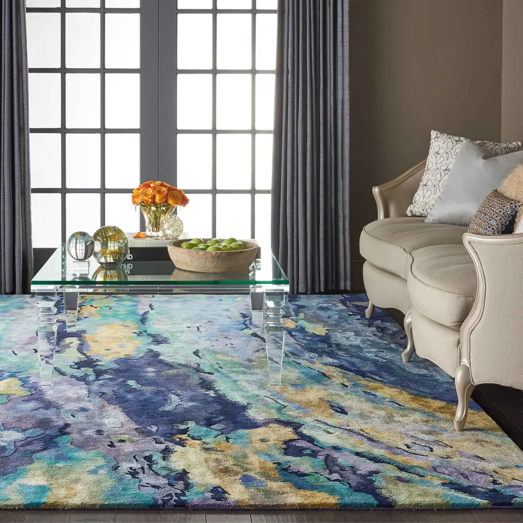 The Multicolor colorway features natural tones of green, turquoise, brown and sepia, while the Silver/Blue colorway features hues of green, blue, lilac, turquoise and maize, each creating an earthy dynamic design flows with a quiet energy to create a style statement that is both striking and serene. Woven with softly shining threads and hand tufted from a luxurious wool blend, this Prismatic area rug from Nourison thrills with both its tone and texture.Designed to captivate, the Prismatic Collection from Nourison brings charismatic color and daringly dimensional texture to the modern home. Expertly hand-tufted from the finest New Zealand wool interwoven with silk-like Luxcelle™, these contemporary rugs blend distinctive style and lasting comfort exquisitely. Ships In 7-10 Business Days Ships In 7-10 Business Days Ships In 7-10 Business Days Ships In 7-10 Business Days Ships In 7-10 Business Days In Stock Early April 2026 Ships In 7-10 Business Days Ships In 7-10 Business Days Ships In 7-10 Business Days Ships In 7-10 Business Days Ships In 7-10 Business Days Ships In 7-10 Business Days In Stock Early January 2026 Rug pad recommended Dense, durable pile Carved details Contemporary abstract pattern Excellent durability even under heavy foot traffic Due to the detailed construction of our rugs, both handmade and machine-made, sizes may vary. Slight variations in color from product to product are natural characteristics of high quality handcrafted home decor. Your product may not exactly match what is pictured on this page.