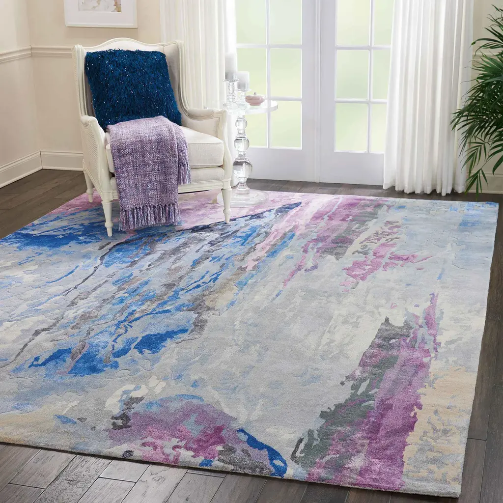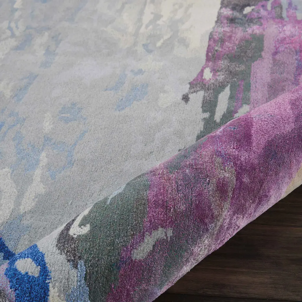 This amazingly artistic rug could adorn a wall as easily as a floor! Silver, purple, and blue tones flow in simulated brush strokes that echo an impressionist painting and make a bold design statement. This hand-tufted rug features a thick, luxurious wool blend pile, carved for added dimension and texture for the perfect combination of durability, comfort, and artistic appeal.Designed to captivate, the Prismatic Collection from Nourison brings charismatic color and daringly dimensional texture to the modern home. Expertly hand-tufted from the finest New Zealand wool interwoven with silk-like Luxcelle™, these contemporary rugs blend distinctive style and lasting comfort exquisitely. Ships In 7-10 Business Days In Stock Early January 2026 In Stock Early April 2026 Ships In 7-10 Business Days Ships In 7-10 Business Days Rug pad recommended Dense, durable pile Carved details Contemporary abstract pattern Excellent durability even under heavy foot traffic Due to the detailed construction of our rugs, both handmade and machine-made, sizes may vary. Slight variations in color from product to product are natural characteristics of high quality handcrafted home decor. Your product may not exactly match what is pictured on this page.
