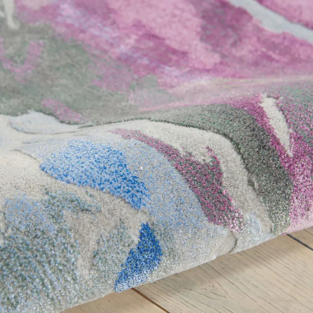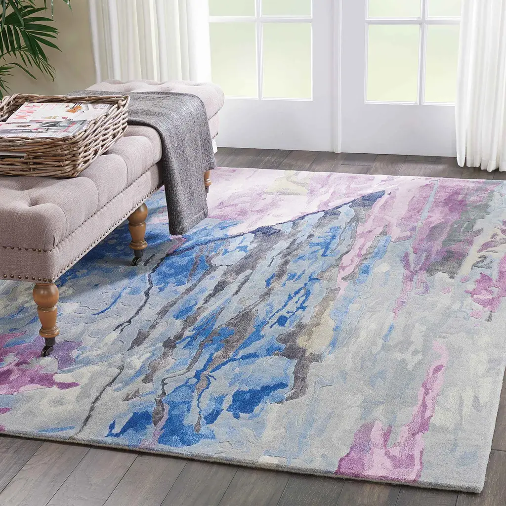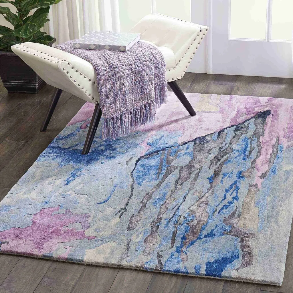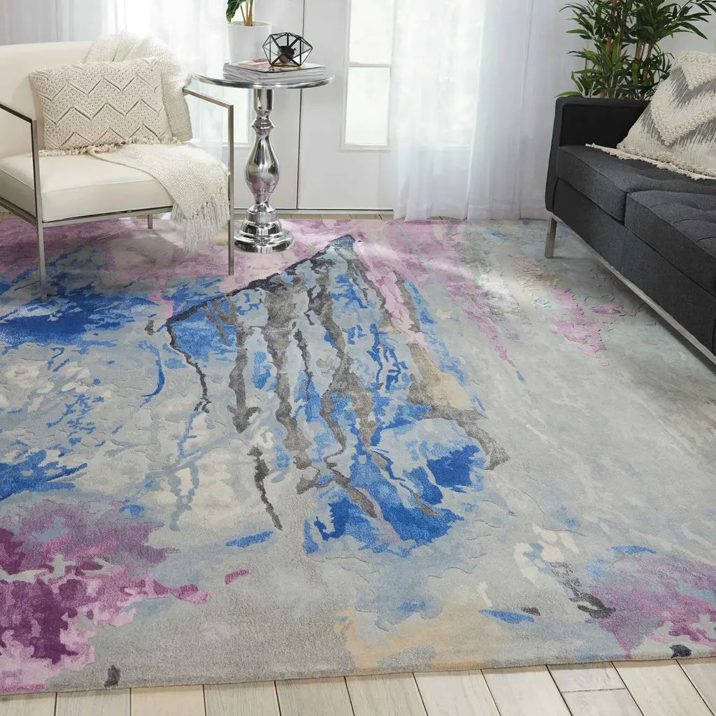 This amazingly artistic rug could adorn a wall as easily as a floor! Silver, purple, and blue tones flow in simulated brush strokes that echo an impressionist painting and make a bold design statement. This hand-tufted rug features a thick, luxurious wool blend pile, carved for added dimension and texture for the perfect combination of durability, comfort, and artistic appeal.Designed to captivate, the Prismatic Collection from Nourison brings charismatic color and daringly dimensional texture to the modern home. Expertly hand-tufted from the finest New Zealand wool interwoven with silk-like Luxcelle™, these contemporary rugs blend distinctive style and lasting comfort exquisitely. Ships In 7-10 Business Days In Stock Early January 2026 In Stock Early April 2026 Ships In 7-10 Business Days Ships In 7-10 Business Days Rug pad recommended Dense, durable pile Carved details Contemporary abstract pattern Excellent durability even under heavy foot traffic Due to the detailed construction of our rugs, both handmade and machine-made, sizes may vary. Slight variations in color from product to product are natural characteristics of high quality handcrafted home decor. Your product may not exactly match what is pictured on this page.