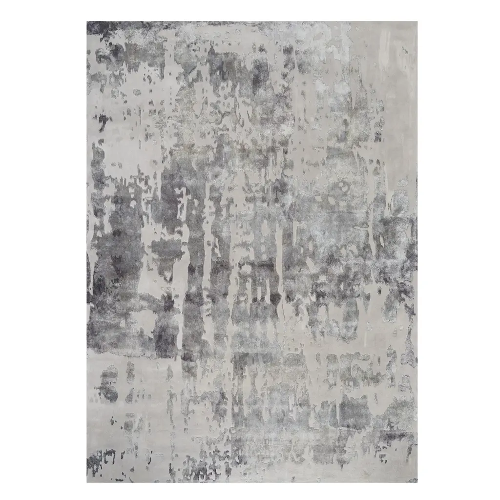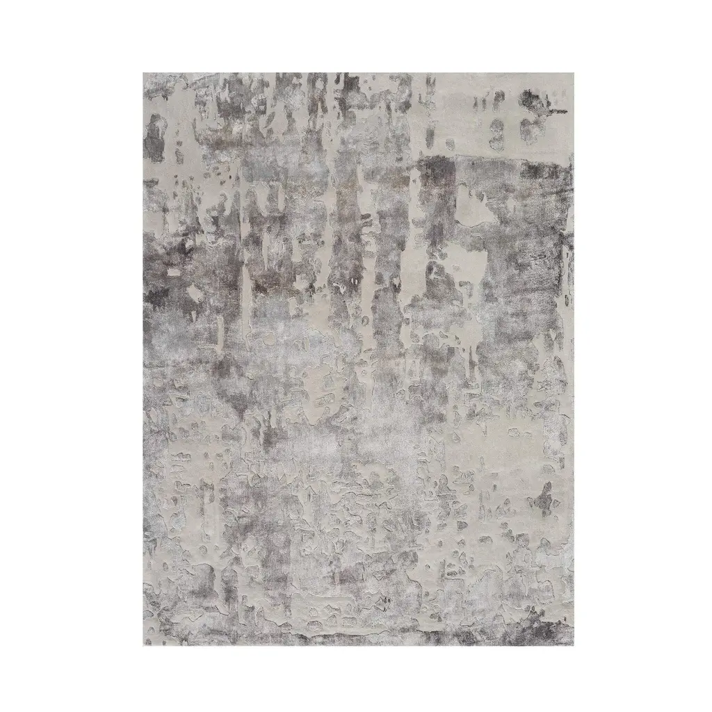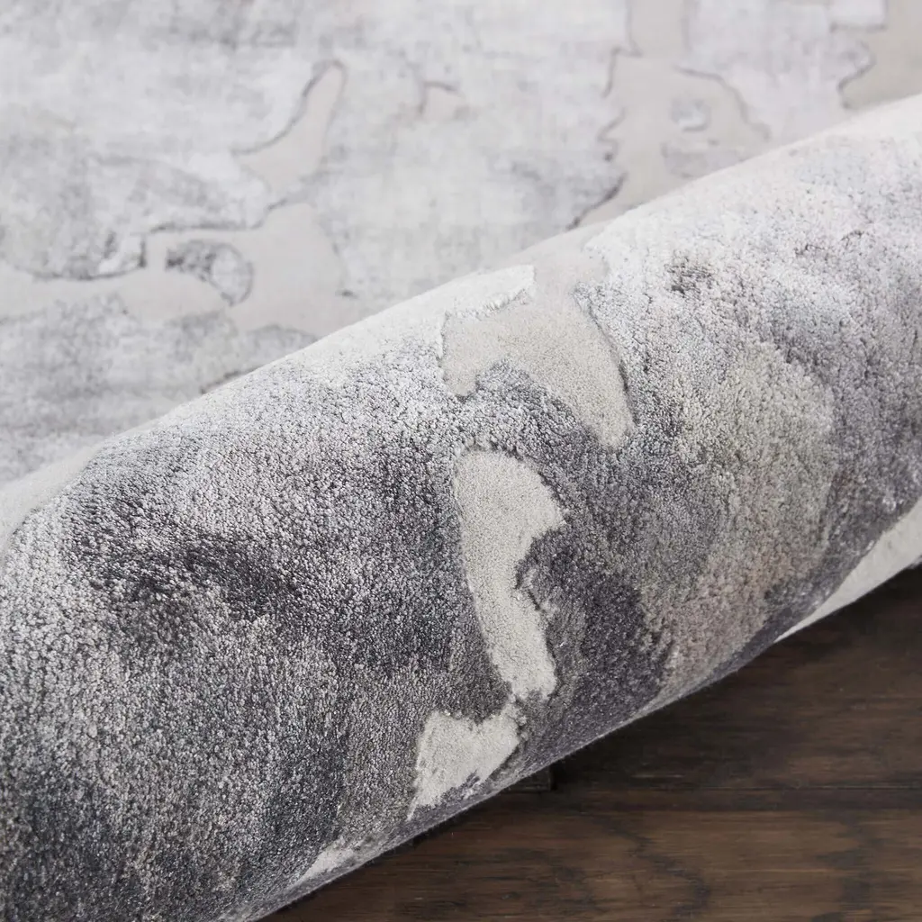This amazingly artistic rug could adorn a wall as easily as a floor! Elegant silver and grey tones flow in simulated brush strokes that make a stunning design statement. This hand-tufted rug features a thick, luxurious pile, carved for added dimension and texture for the perfect combination of durability, comfort, and artistic appeal.Designed to captivate, the Prismatic Collection from Nourison brings charismatic color and daringly dimensional texture to the modern home. Expertly hand-tufted from the finest New Zealand wool interwoven with silk-like Luxcelle™, these contemporary rugs blend distinctive style and lasting comfort exquisitely. Ships In 7-10 Business Days Ships In 7-10 Business Days Ships In 7-10 Business Days Ships In 7-10 Business Days Ships In 7-10 Business Days Rug pad recommended Dense, durable pile Carved details Contemporary abstract pattern Excellent durability even under heavy foot traffic Due to the detailed construction of our rugs, both handmade and machine-made, sizes may vary. Slight variations in color from product to product are natural characteristics of high quality handcrafted home decor. Your product may not exactly match what is pictured on this page.