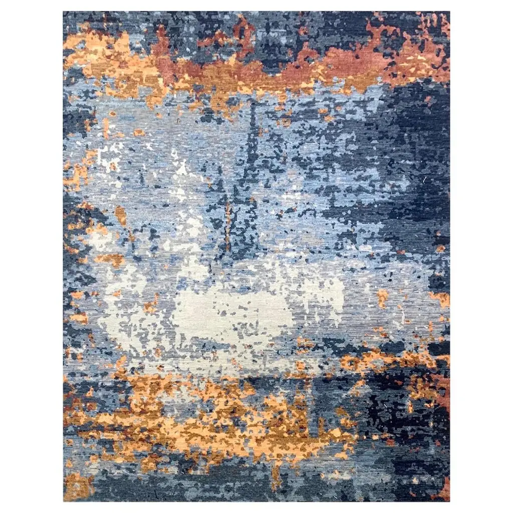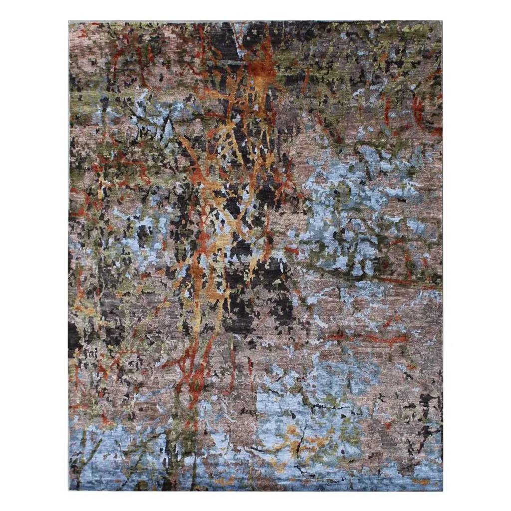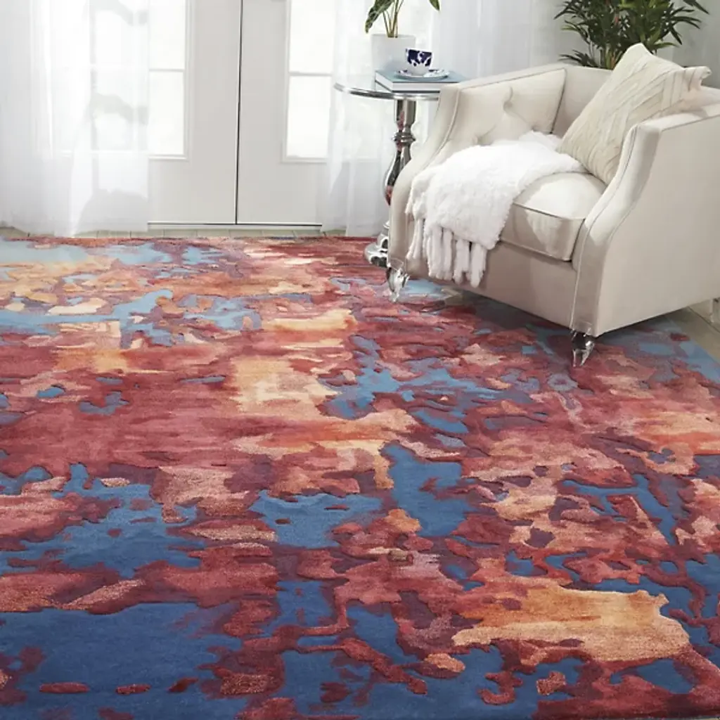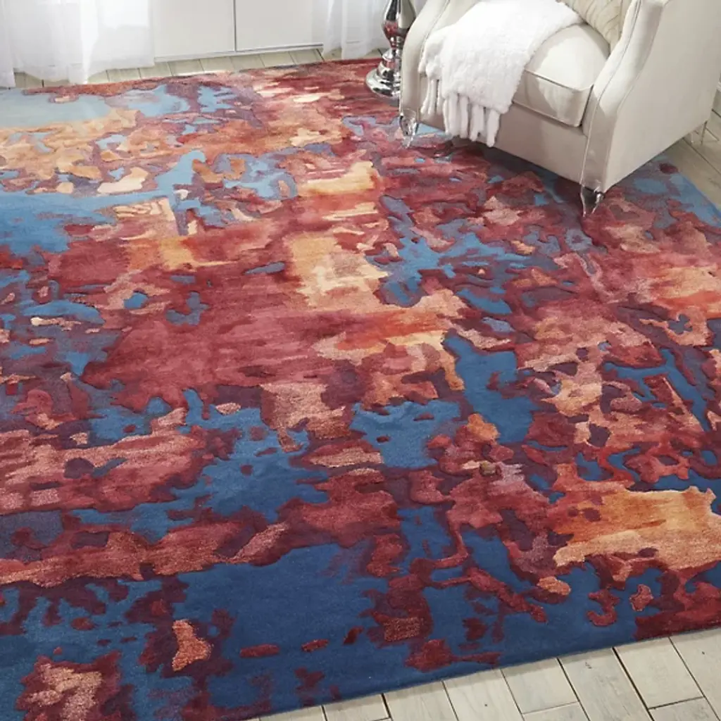 Give interiors an elegant autumnal quality with the present, tasteful lines of the Prismatic PRS13 Area Rug from Nourison Home. A handmade and softly tufted assembly of blended fabric fibers in a rectangular array, the warmer colors appear to ‘leap’ from the cooler surface of the rug’s background, creating memorable swirls of color.