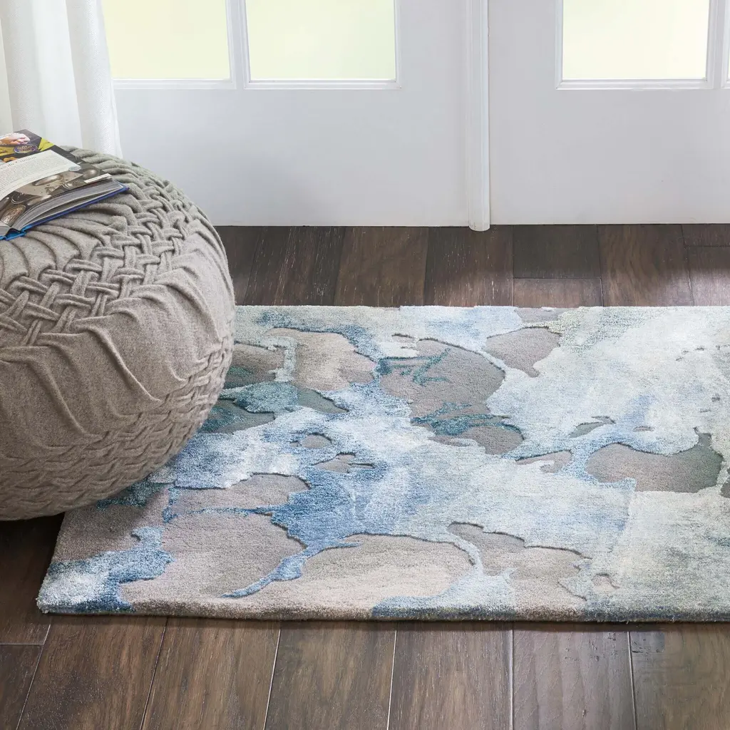 Swirling shades of blues, greys and cream create a deep, almost cosmic design in this exquisite Prismatic Collection rug. The luxurious hand-tufted pile is carved for added dimension and texture for the perfect combination of durability, comfort, and distinctive style statement.Designed to captivate, the Prismatic Collection from Nourison brings charismatic color and daringly dimensional texture to the modern home. Expertly hand-tufted from the finest New Zealand wool interwoven with silk-like Luxcelle™, these contemporary rugs blend distinctive style and lasting comfort exquisitely. Ships In 7-10 Business Days Ships In 7-10 Business Days Ships In 7-10 Business Days In Stock Early January 2026 In Stock Early January 2026 Ships In 7-10 Business Days Rug pad recommended Dense, durable pile Carved details Contemporary abstract pattern Excellent durability even under heavy foot traffic Due to the detailed construction of our rugs, both handmade and machine-made, sizes may vary. Slight variations in color from product to product are natural characteristics of high quality handcrafted home decor. Your product may not exactly match what is pictured on this page.