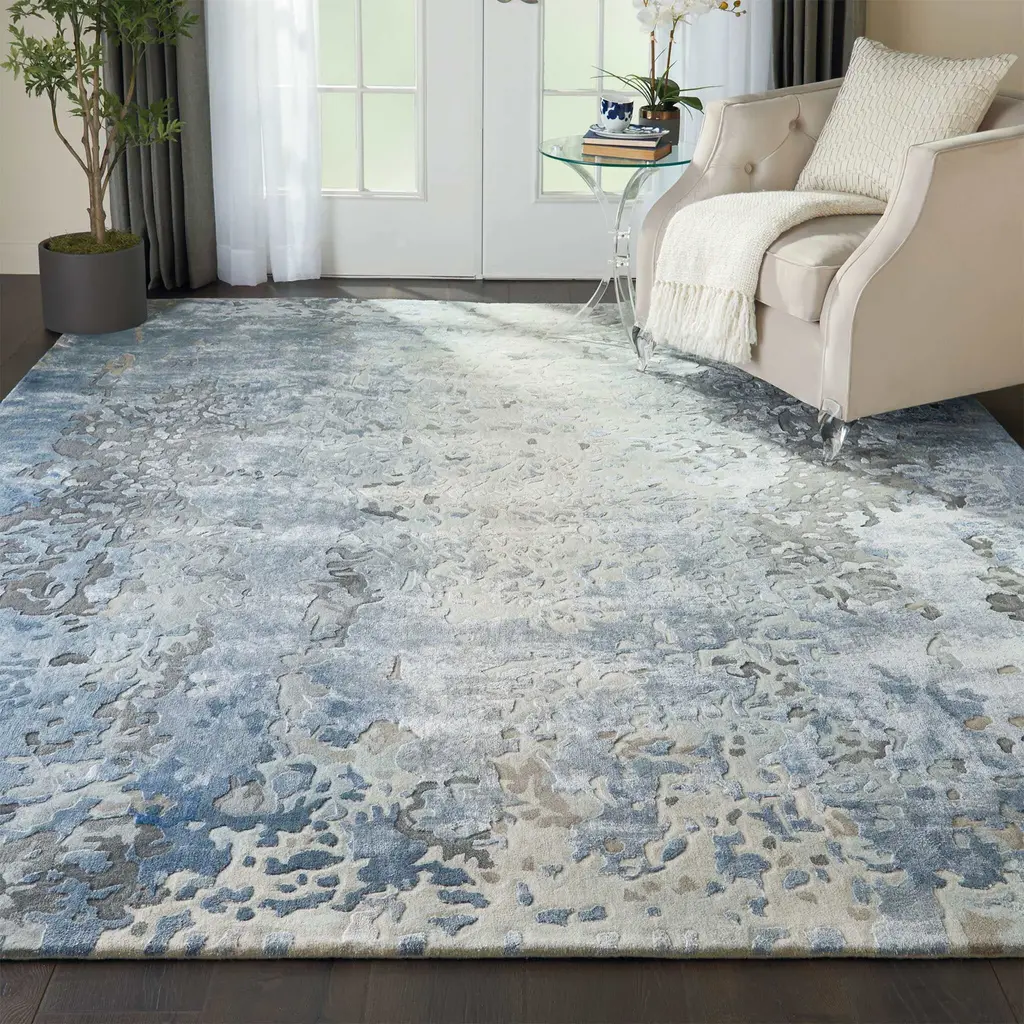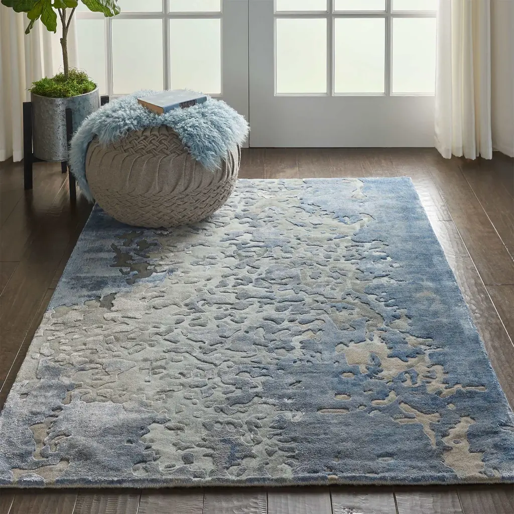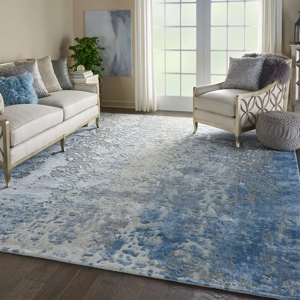 This contemporary abstract rug design from the Nourison Prismatic Collection features ombred shades of blue and grey, hand carved into a meticulous abstract pattern. The thick wool pile features sleek Luxcelle™ highlights for exceptional depth, sheen, and texture, bringing stylish chic to any room in the home.Designed to captivate, the Prismatic Collection from Nourison brings charismatic color and daringly dimensional texture to the modern home. Expertly hand-tufted from the finest New Zealand wool interwoven with silk-like Luxcelle™, these contemporary rugs blend distinctive style and lasting comfort exquisitely. Ships In 7-10 Business Days Ships In 7-10 Business Days Ships In 7-10 Business Days Ships In 7-10 Business Days Ships In 7-10 Business Days Rug pad recommended Dense, durable pile Carved details Contemporary abstract pattern Abstract patterns in blue, grey, and charcoal Due to the detailed construction of our rugs, both handmade and machine-made, sizes may vary. Slight variations in color from product to product are natural characteristics of high quality handcrafted home decor. Your product may not exactly match what is pictured on this page.