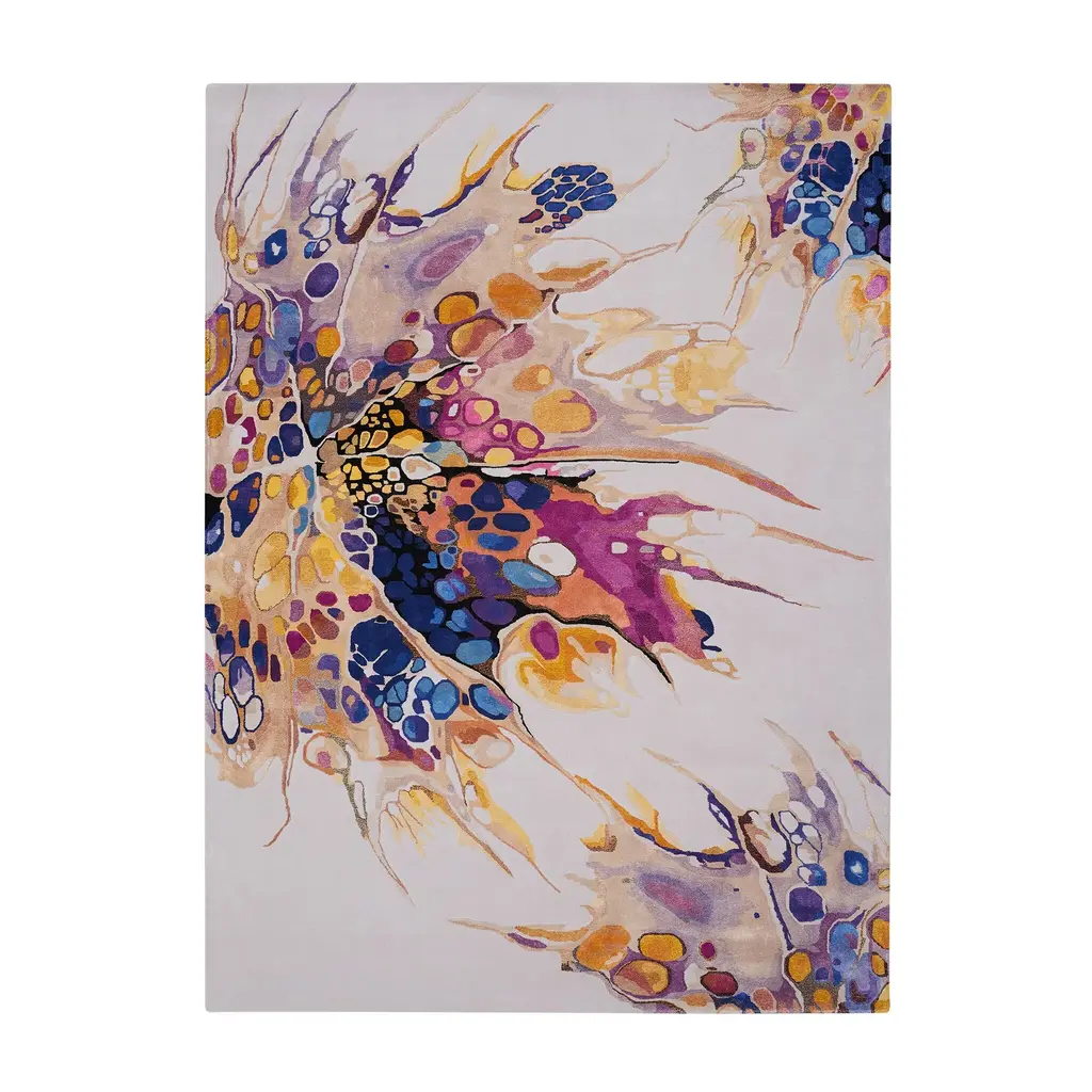 Celebrate your creativity with the Prismatic PRS20 Area Rug from Nourison Home. This artistic area rug features splash patterns that collide along the rug’s corners and edges. The subtle, bubble-like patterns seen throughout the splashes slightly resemble the spots which adorn the wings of the monarch butterfly. Your tufted area rug is composed of a blend of 50% New Zealand wool and 50% Luxcelle.