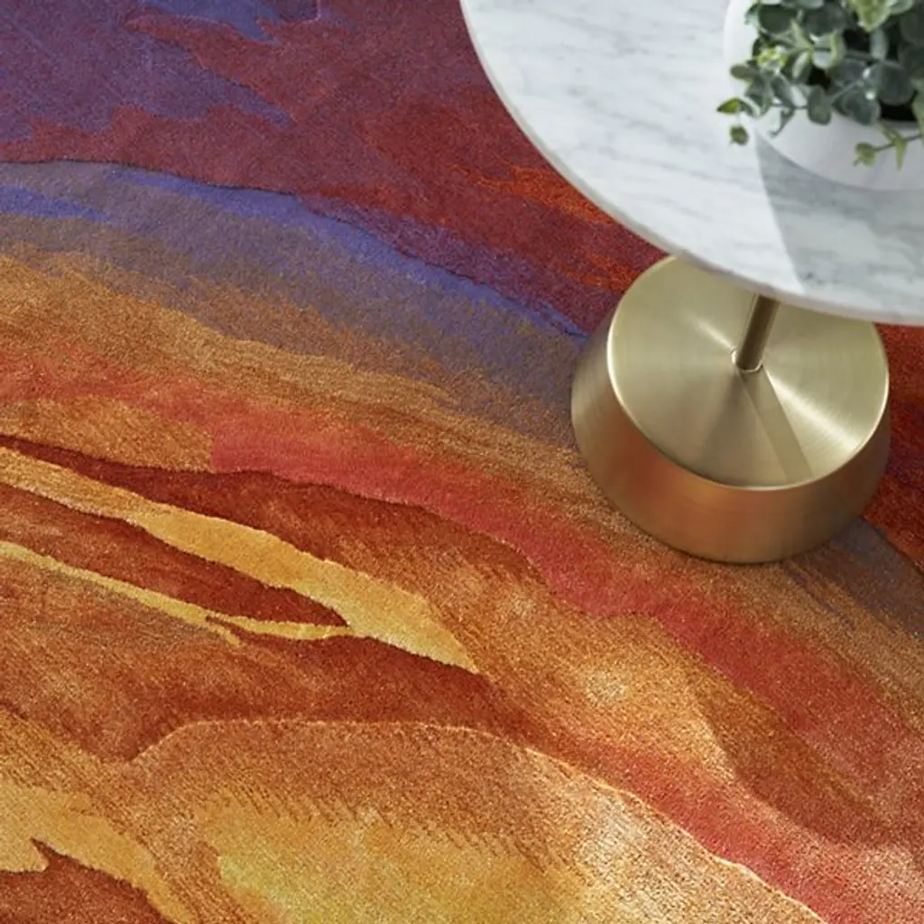 The Prismatic PRS25 Area Rug is presented by Nourison Home. It has been expertly hand-tufted from a blend of New Zealand wool and the brand’s soft, signature Luxcelle material. The vibrant design of the rug is truly captivating, as it evokes the look of blended brush strokes in a mesmerizing gradient of colors.