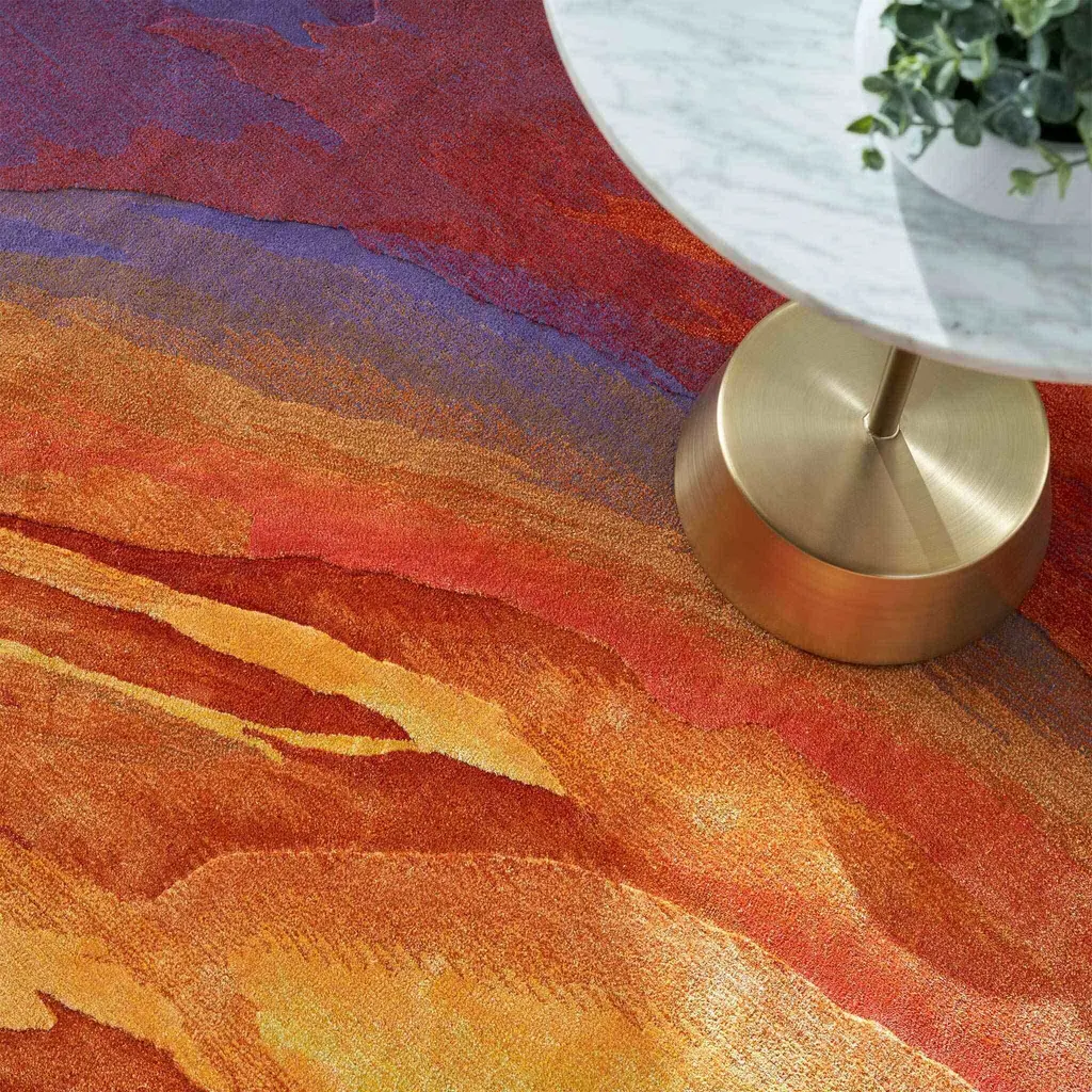 A stunning foundation for your décor, this abstract rug from the Prismatic Collection faithfully recreates the look of a beautiful sunset. Its generously thick pile is handmade from a luxurious blend of fine New Zealand wool and silky Luxcelle™ fibers for premier comfort and lasting style. Presented in rich shades of red, golden yellow, orange, pink, purple, and blue.Designed to captivate, the Prismatic Collection from Nourison brings charismatic color and daringly dimensional texture to the modern home. Expertly hand-tufted from the finest New Zealand wool interwoven with silk-like Luxcelle™, these contemporary rugs blend distinctive style and lasting comfort exquisitely. In Stock Early January 2026 Ships In 7-10 Business Days Ships In 7-10 Business Days Ships In 7-10 Business Days Ships In 7-10 Business Days Ships In 7-10 Business Days Rug pad recommended Handmade blend of wool and silk-like fibers offer lasting comfort and beauty 0.75” pile height feels wonderfully soft underfoot Abstract rug adds a painterly effect to your floors Due to the detailed construction of our rugs, both handmade and machine-made, sizes may vary. Slight variations in color from product to product are natural characteristics of high quality handcrafted home decor. Your product may not exactly match what is pictured on this page.