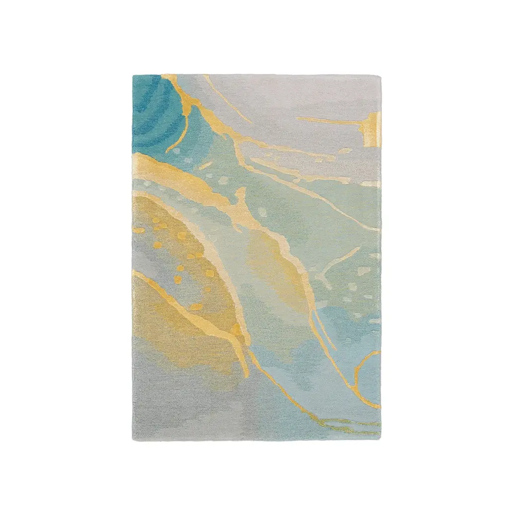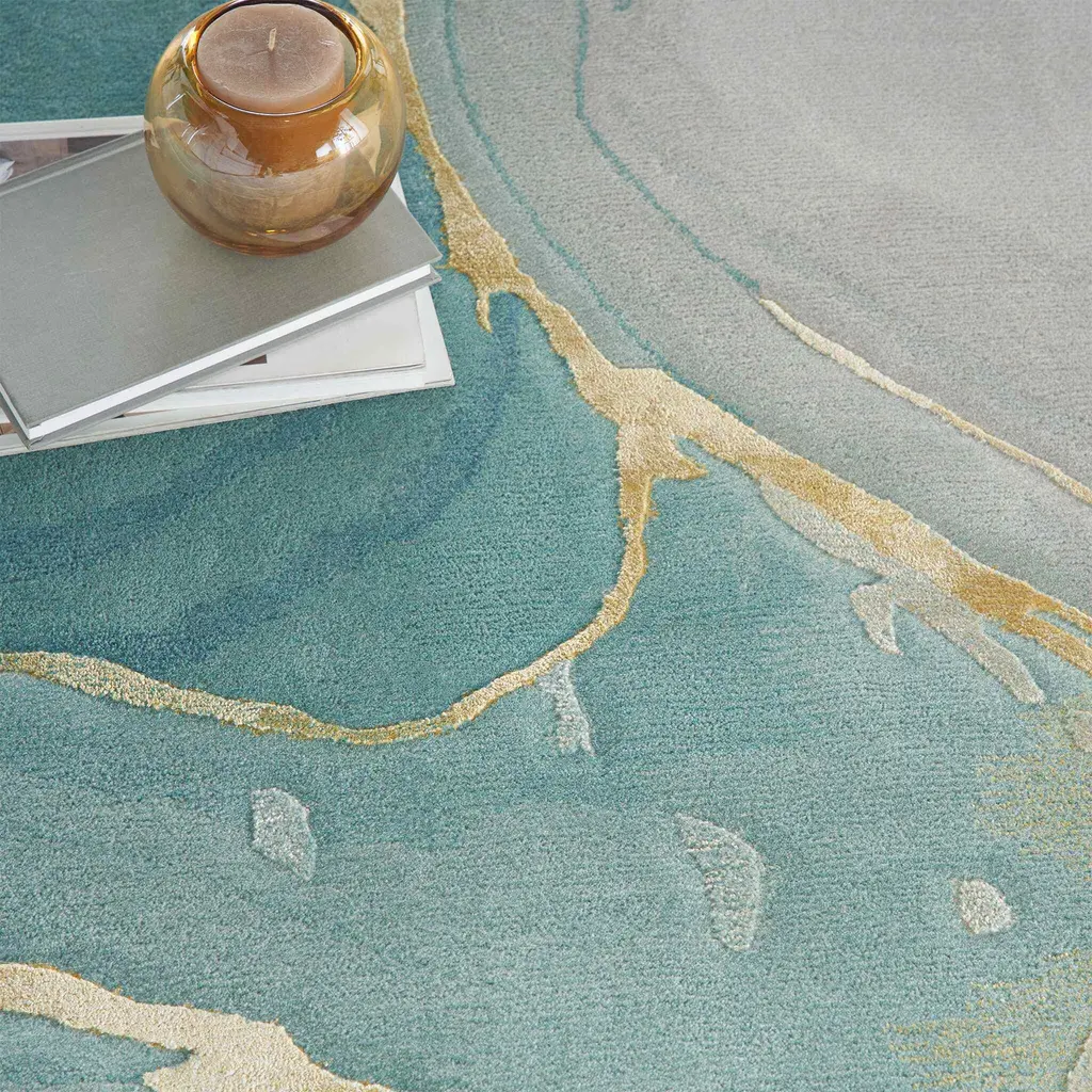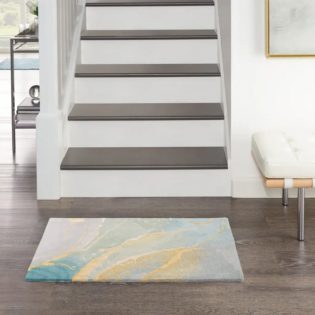 Evoke a sense of calm with this modern rug from the Prismatic Collection. Abstract ripples of grey and blue are accented by swirls of gold that seemingly radiates from its softly hued ground. Hand carved for an added sense of depth, it’s a standout foundation for your living room or bedroom décor. This handmade rug is crafted from a fabulously textured blend of New Zealand wool and silky Luxcelle™.Designed to captivate, the Prismatic Collection from Nourison brings charismatic color and daringly dimensional texture to the modern home. Expertly hand-tufted from the finest New Zealand wool interwoven with silk-like Luxcelle™, these contemporary rugs blend distinctive style and lasting comfort exquisitely. Ships In 7-10 Business Days Ships In 7-10 Business Days Ships In 7-10 Business Days Ships In 7-10 Business Days Ships In 7-10 Business Days Ships In 7-10 Business Days Rug pad recommended Handmade blend of New Zealand wool and silk-like fibers offer lasting comfort and beauty 0.75” pile height feels wonderfully soft underfoot Modern rug brings a sense of tranquility to your surroundings Due to the detailed construction of our rugs, both handmade and machine-made, sizes may vary. Slight variations in color from product to product are natural characteristics of high quality handcrafted home decor. Your product may not exactly match what is pictured on this page.