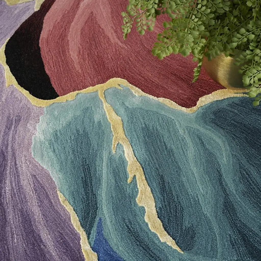 The Prismatic PRS34 Area Rug is presented by Nourison Home. Hand-tufted from a fine blend of New Zealand wool and signature Luxcelle material, the combination ensures both durability and a luxurious texture underfoot. The rug’s design is a psychedelic blend of floral colors and shapes reminiscent of watercolor brush strokes.