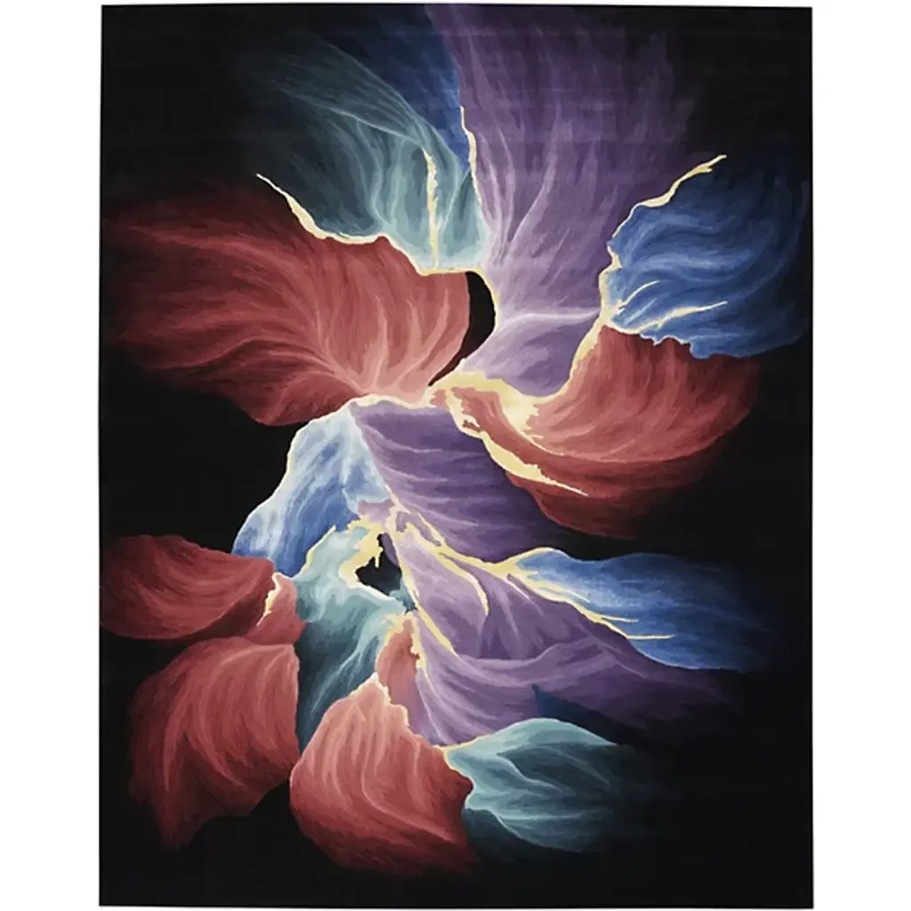 The Prismatic PRS34 Area Rug is presented by Nourison Home. Hand-tufted from a fine blend of New Zealand wool and signature Luxcelle material, the combination ensures both durability and a luxurious texture underfoot. The rug’s design is a psychedelic blend of floral colors and shapes reminiscent of watercolor brush strokes.