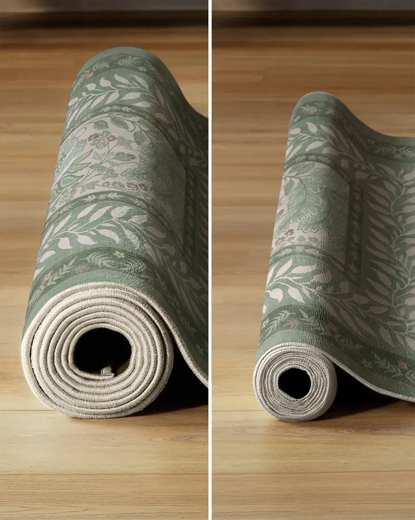 Get whisked away to southern France with our Provence Sage Rug. Inspired by rustic woven textiles and traditional block print techniques, this design features an inset border with lovely botanical details. A palette of pale and darker sage tones, creamy neutrals, dusty pink, and plum creates a tranquil aesthetic in any room. Water-resistant, stain-resistant, and machine-washable. Rug colors may vary slightly according to your device and the lighting in your space.