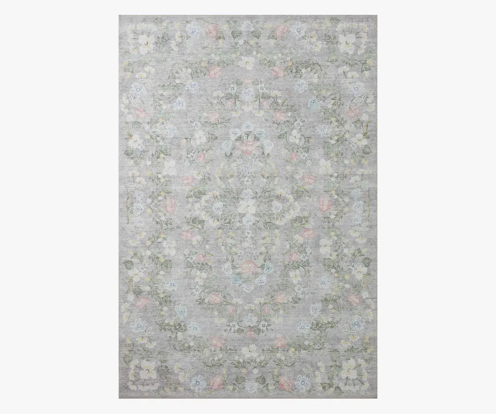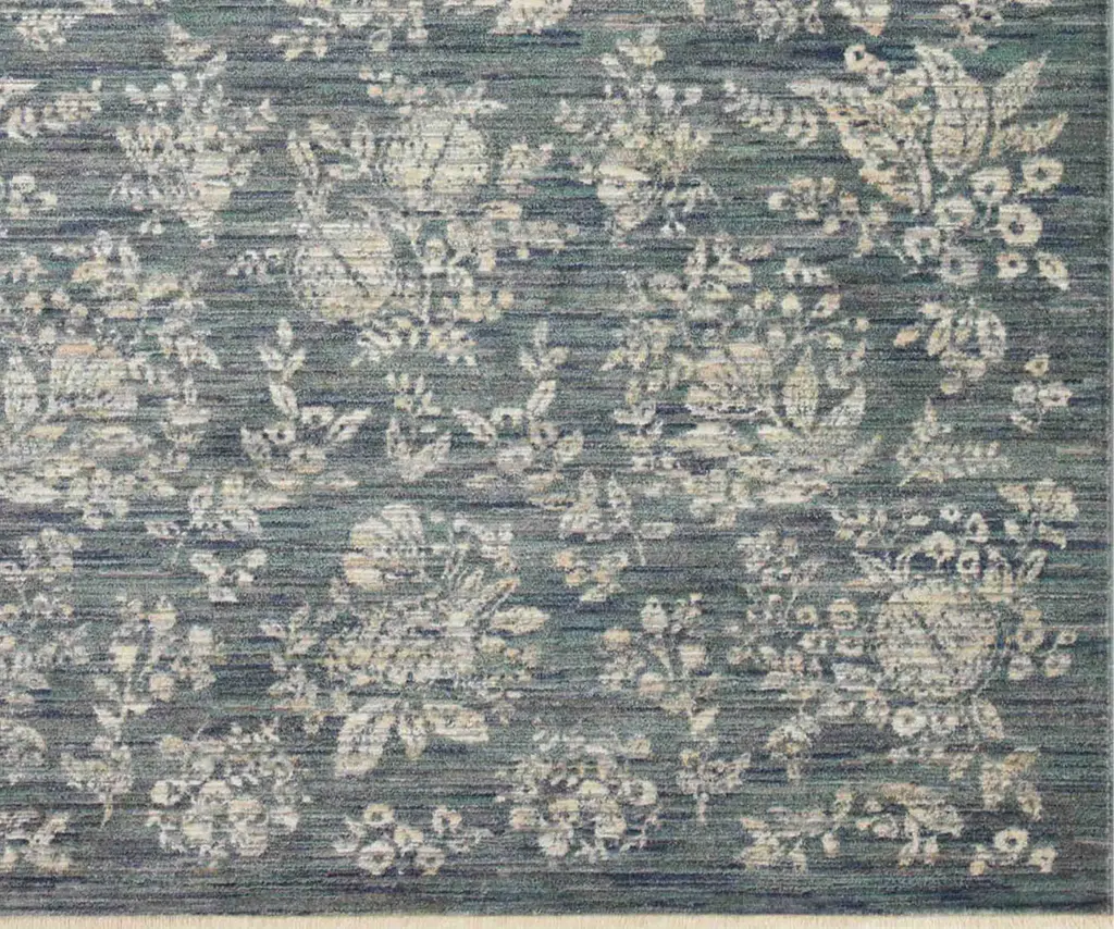 A subtle, all-over floral design extends edge to edge on the Therese rug. This style is part of our Provence collection, which features a plush texture with carved details for added dimension. Provence rugs are power-loomed of a soft blend of polyester and polypropylene and finished with a small fringe. The layout and scale of our rugs is adjusted to accommodate each available size, and may be different than what is pictured here. Images of each size are available by hovering over the desired size on our desktop site.