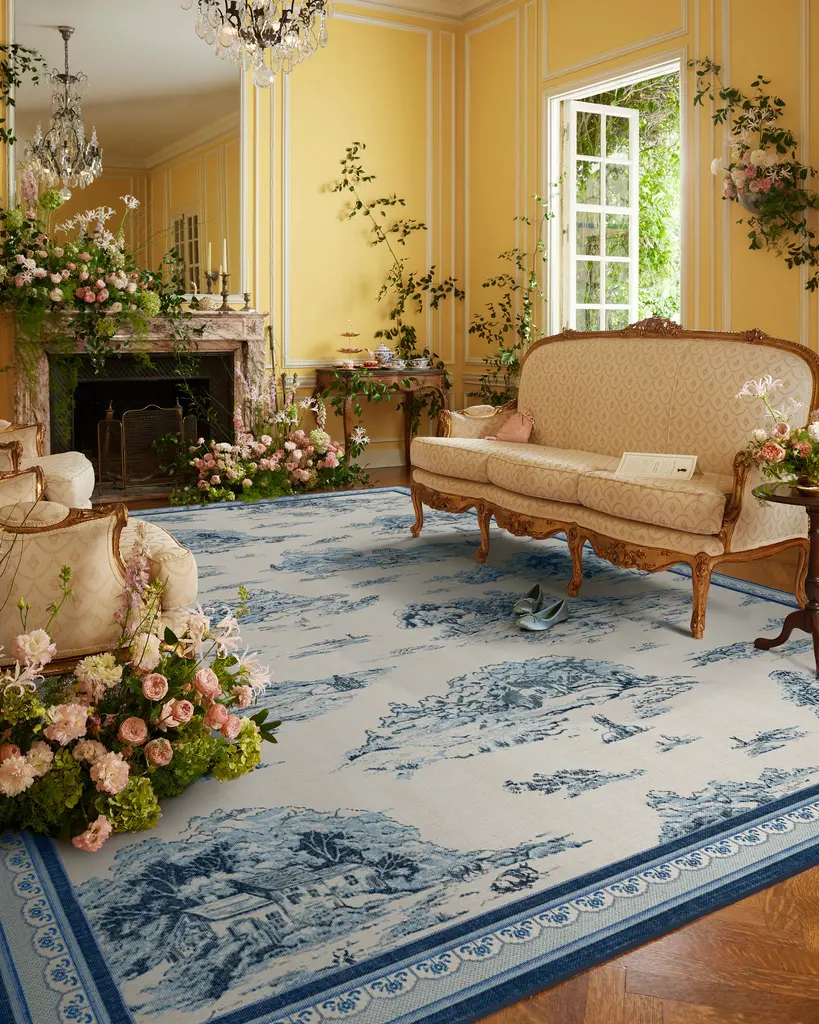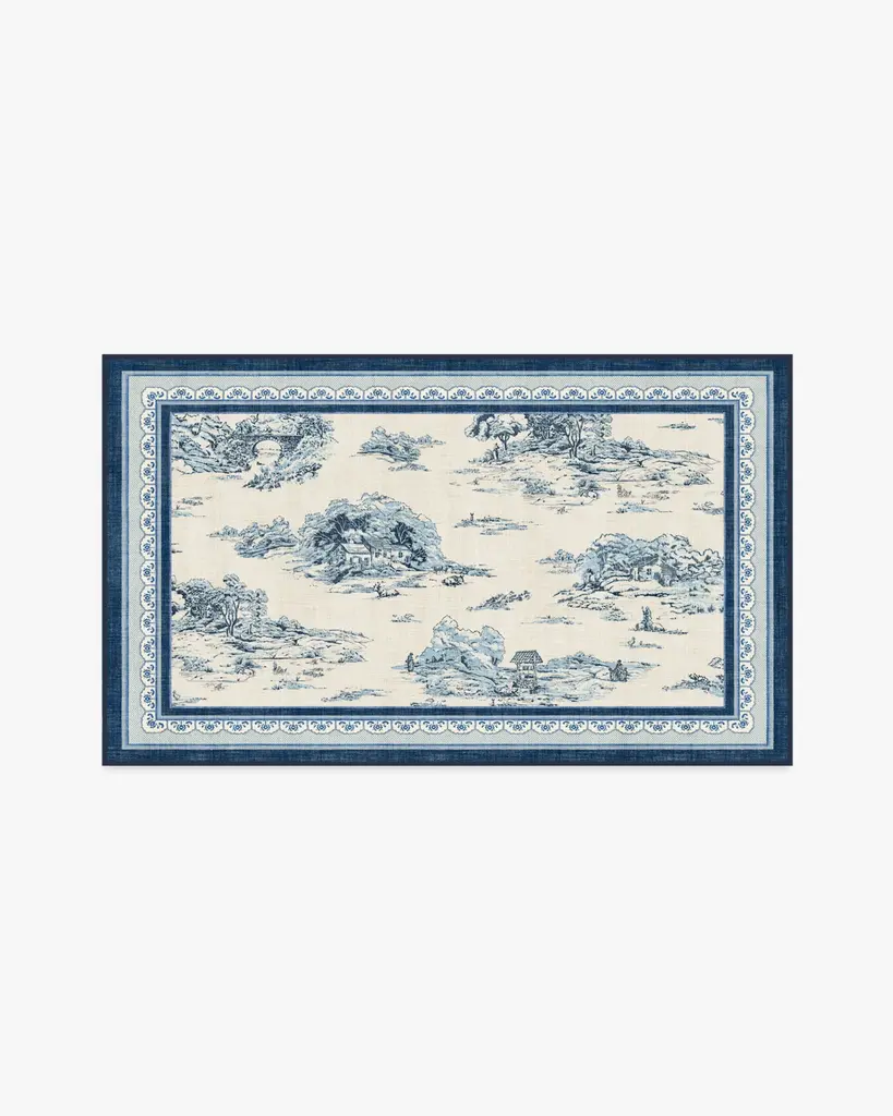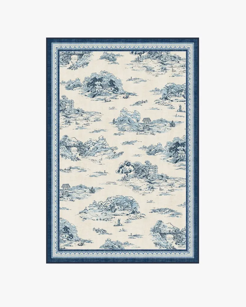 Live in lavish luxury with our Regency-era Provence Toile Delft Blue Rug. Inspired by idyllic and quaint scenes of the French countryside, this classic toile design captures the essence of flora and fauna in pastoral landscapes. The soothing Delft Blue motifs are seamlessly integrated across a cream background. Water-resistant, stain-resistant, and machine-washable. Rug colors may vary slightly according to your device and the lighting in your space.