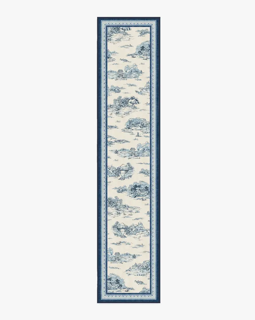Live in lavish luxury with our Regency-era Provence Toile Delft Blue Rug. Inspired by idyllic and quaint scenes of the French countryside, this classic toile design captures the essence of flora and fauna in pastoral landscapes. The soothing Delft Blue motifs are seamlessly integrated across a cream background. Water-resistant, stain-resistant, and machine-washable. Rug colors may vary slightly according to your device and the lighting in your space.