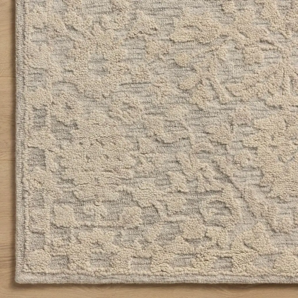 The Prudence Collection is a hand-tufted area rug made of soft, space-dyed wool and cotton, which lends a subtle gradation of color throughout the floral design. The rug’s background is low-looped, while the pattern is made with a chunky, higher loop to create even more depth in this sophisticated design. This collection is hand-tufted of wool and cotton in India and GoodWeave-certified, ensuring our commitment to ethical production and the support of weavers’ communities.