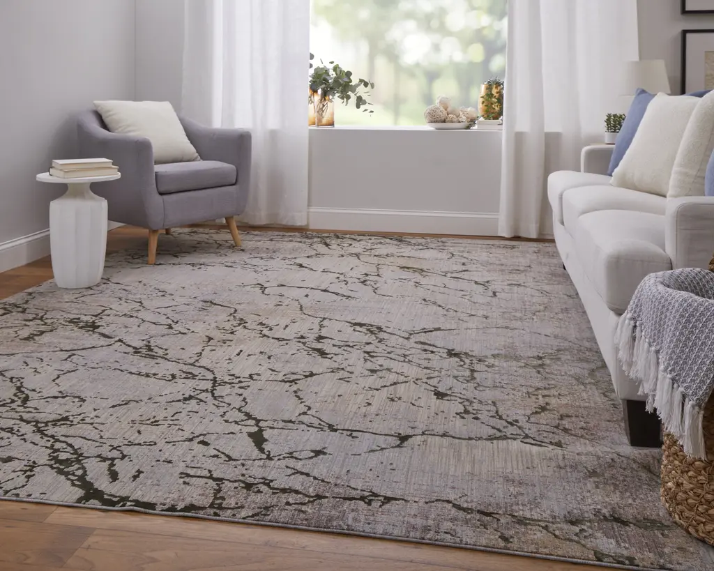 Pryor Modern Abstract - Taupe/green/tan Area Rug - 6'7" X 9'6" Rectangle