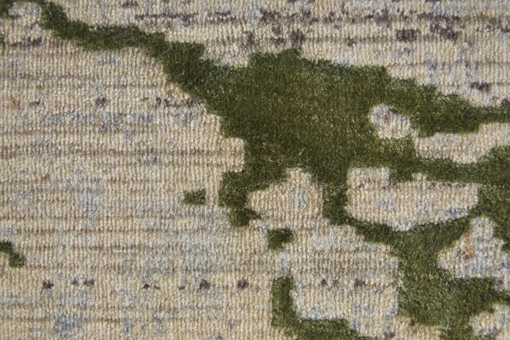 Collection: Pryor Colors: Taupe, Green, Tan Construction: Machine Made Material: Face: Polyester, Viscose / Warp: Cotton Pile: Low Pile Pile Height: 0.09" Styles: Contemporary,Casual,Bohemian & Eclectic Backing: Cotton Made In: Turkey Thickness: 0.09" Price Range: $$$$$ (Premium)