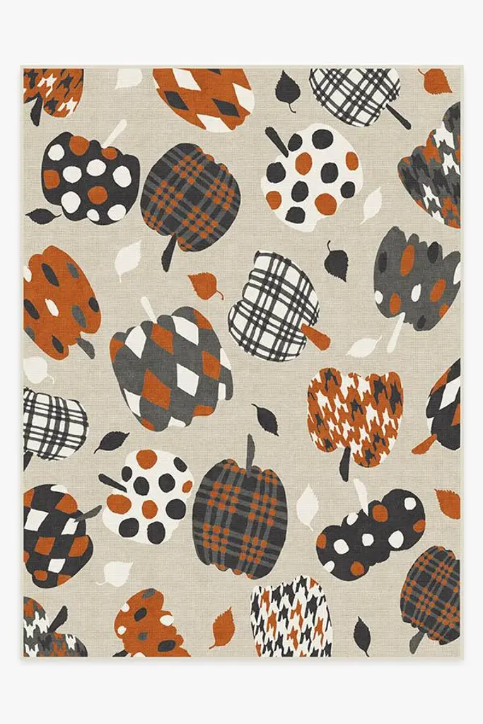 Our Pumpkin Orange Rug is all dressed up and ready to liven up your fall or Halloween decor. A harvest of patterned pumpkins, colored in autumn hues of orange and grey, makes this whimsical rug a seasonal must-have. Water-resistant, stain-resistant, and machine-washable.