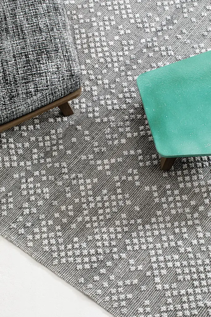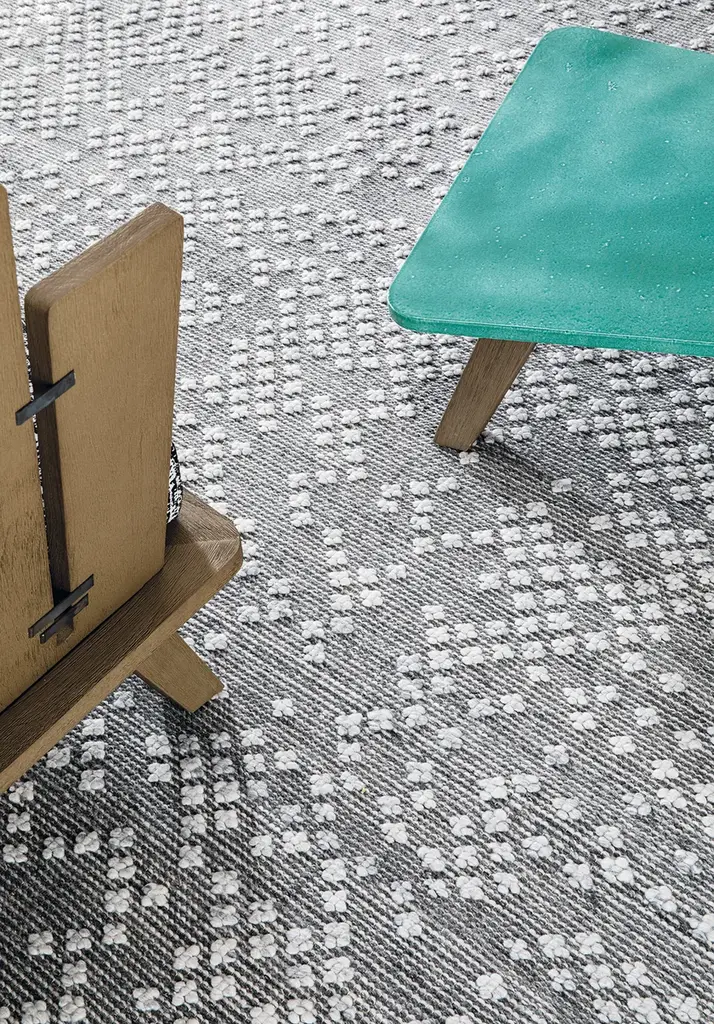 Skilfully hand woven, using macro yarns that, thanks to a special treatment, produce a soft ‘warm’ woolly effect, Rete, Punto croce and Camouflage, whose name hints at their characteristic weave, blend different, refined colour shades, that goes perfectly with any environment. Functional, versatile and hugely decorative, these rugs are designed to be resistant to the elements and UV rays, ensuring long durability and robustness. Chilling, lounging and dining areas in the garden, on terraces or balconies and in other outdoor spaces are thus transformed into increasingly more complete, harmonious, welcoming habitats.With the new collection of rugs Nodi, Ethimo and Paola Navone present soft elegant surfaces that recreate outdoors the same intimacy and comfort of rooms inside the home. In a perfect balance of original style and performing materials, Rete, Punto croce and Camouflage, composing the collection Nodi, can ‘pick out’ an area, create a space, bring ideal definition to an environment or enhance a display, lending a sense of quality and beauty.