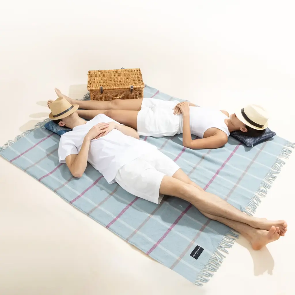 Pure New Wool Picnic Blanket - Duck Egg Checks