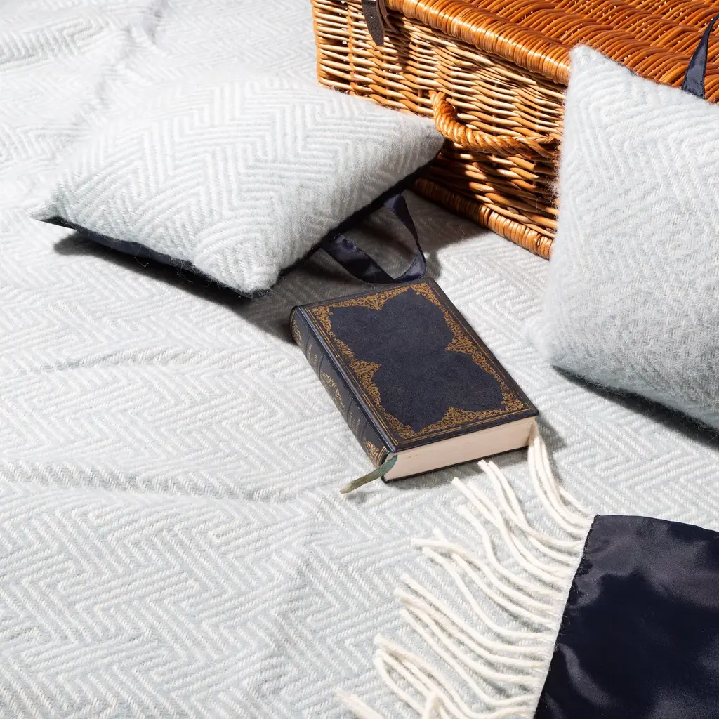 Pure New Wool Waterproof Picnic Blanket - Blue