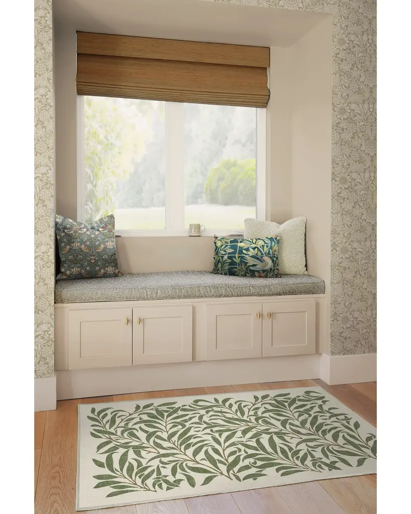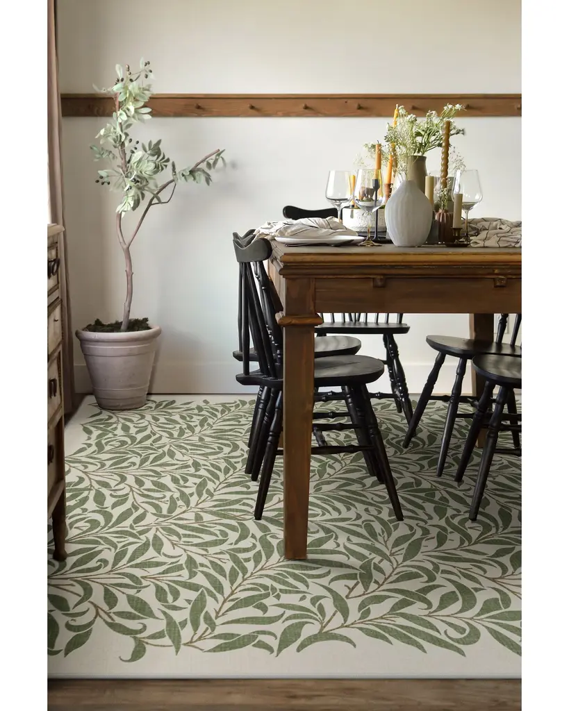 Lose yourself in the romantic intricacies of the Morris & Co. Pure Willow Boughs Green Rug. Based on one of William Morris's most recognizable designs, this rug touts a balanced composition of intertwining leaves and vines that brings simple sophistication to any space. The organic edge provides relief and draws the viewer into the natural eloquence of the olive and cream pattern. Water-resistant, stain-resistant, and machine-washable. Rug colors may vary slightly according to your device and the lighting in your space.