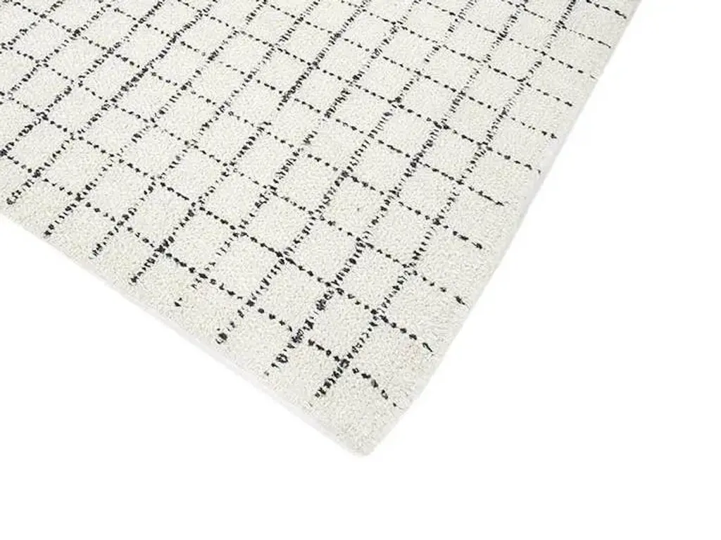 Purity ADAR-1002(CS-01) is a hand-knotted rug, an extraordinary blend of contemporary design and traditional craftsmanship.In a sophisticated pairing of Antique White and Ebony, this 180x270 cm flat-weave dhurrie exudes contemporary elegance. Its intricate, flowing geometric silhouette and abstract design are a celebration of modern artistry, rendered in the finest acrylic yarns from Vimar 1991—Chanel’s legendary yarn manufacturer. The design's seamless blend of subtlety and statement is elevated by the expert craftsmanship of Jaipur Rugs artisans, who imbue each weave with precision and passion. Evoking the textures of couture fabrics, this dhurrie redefines luxury, transforming it into a tactile and visual masterpiece. A timeless addition to elevate any space with grace and exclusivity.Composition: 73% Wool, 1% Silk, and 26% Polyester