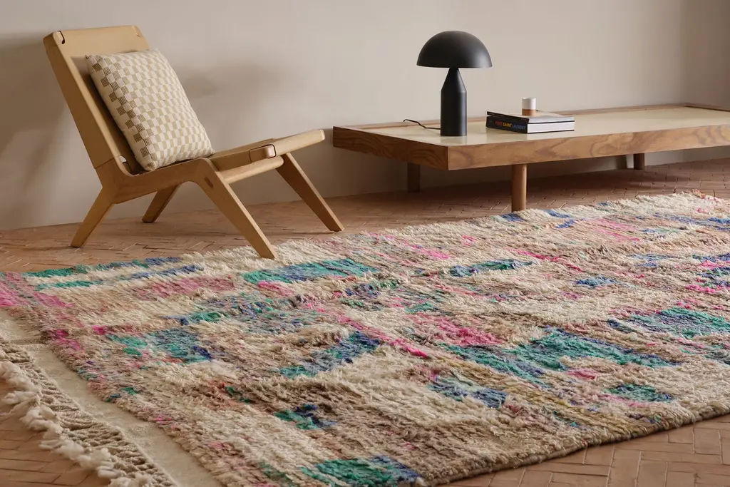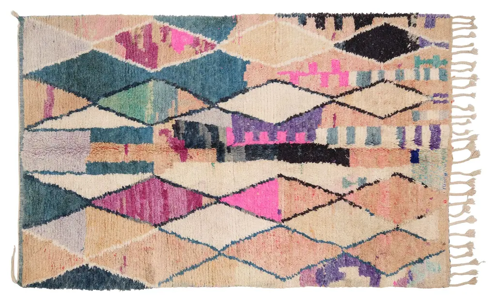 Our Moroccan pieces are each one-of-a-kind. Much of our collection was woven between 30 and 100 years ago, and curated by us. Other rugs in our collection are fresh off the loom and made with traditional techniques. Moroccan rugs don’t come with a key. As with any painting or poem, their motifs have many subjective interpretations. Originally made for personal use, these rugs took months to weave, documenting a shifting tide of events and emotions in the weaver’s life.