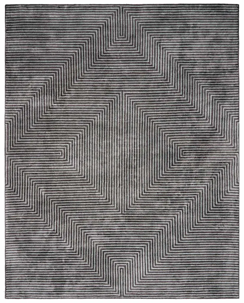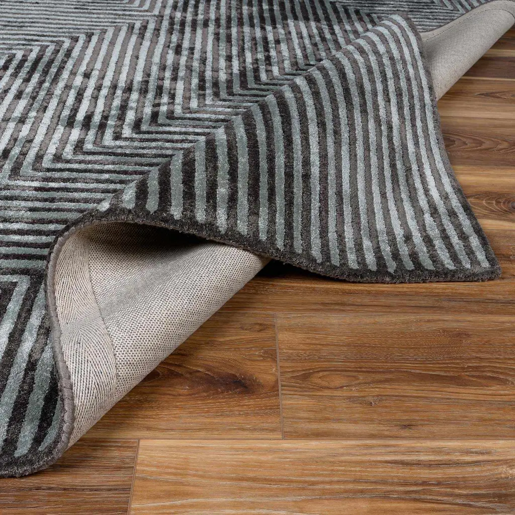 Quartz Patterned Sheen Gray/green Viscose Rug - 5' X 7'6" Rectangle