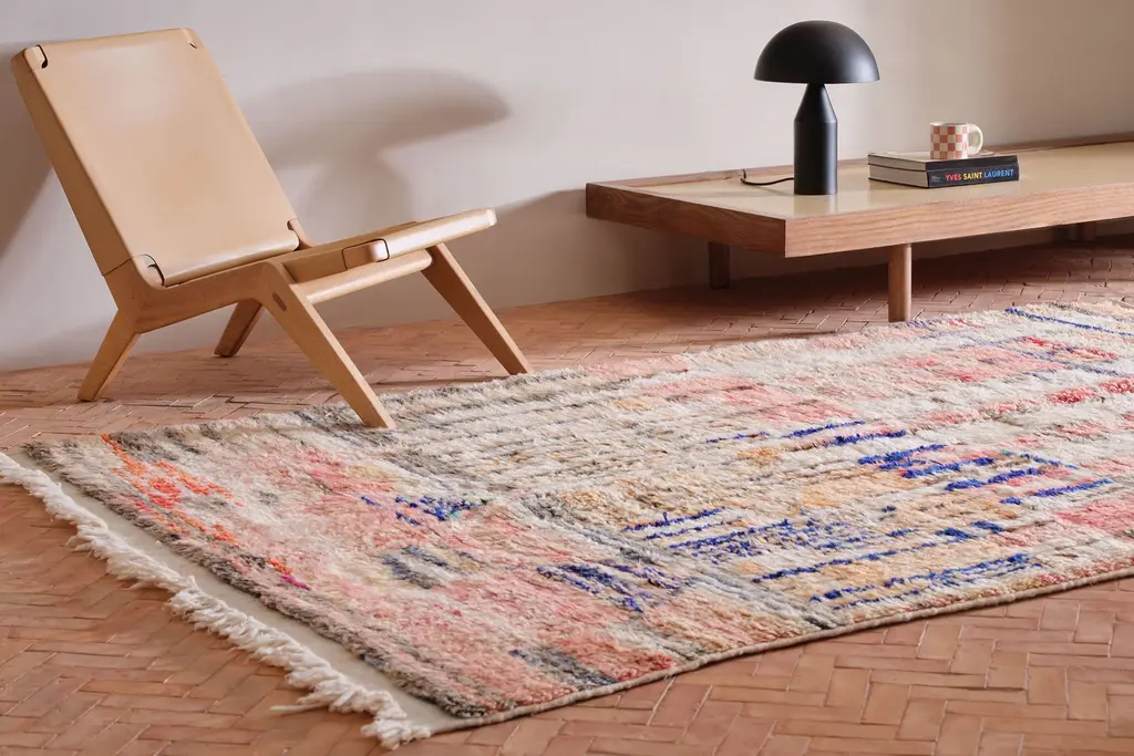 Our Moroccan pieces are each one-of-a-kind. Much of our collection was woven between 30 and 100 years ago, and curated by us. Other rugs in our collection are fresh off the loom and made with traditional techniques. Moroccan rugs don’t come with a key. As with any painting or poem, their motifs have many subjective interpretations. Originally made for personal use, these rugs took months to weave, documenting a shifting tide of events and emotions in the weaver’s life.