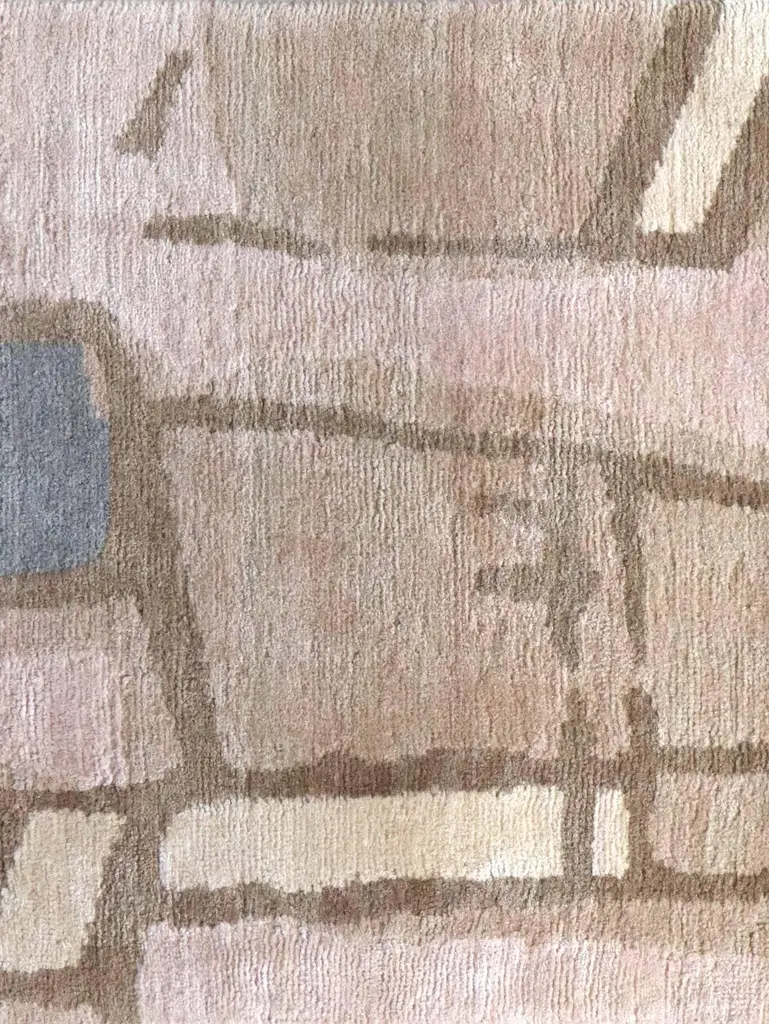 Quotidiana Morea hand knotted Rug by EskayelDimensions: D 8' x H 10'Pile Height: 6 mmMaterials: 100% Merino wool.Eskayel hand knotted rugs are woven to order and can be customized in various sizes, colors, materials, and weave constructions. Initially created as a pattern for high end wallpaper and fabric, Quotidiana has transitioned into the world of luxury rugs. Birthed from a series of paintings depicting scenes from within an apartment and office, the original pattern intricately weaves these views together and then deconstructed and abstracted to create a sophisticated new rug design. Pushing surface design further with new materials and techniques has become an integral part of the Eskayel rug design process. Quotidiana is the most recent result of this exploration and example of thoughtful design that melds profound hues, sumptuous silks and wool blends, with skilled weaving techniques. Morea is a mauve based hand knotted rug with pops of warm brown, cream, and deep blue. Quotidiana is available in seven colorways. Eskayel is a New York-based textile design studio that weaves Fine art with exacting craftsmanship. Dedicated to sustainable innovation and lasting beauty, it treats all environments conscientiously. Each of Eskayel’s one-of-a-kind designs originates from a painting inspired by nature or travel and created by studio founder Shanan Campanaro. Using eco-friendly methods, including water-based pigment ink, regional production and sustainably sourced materials, Eskayel evolves these artworks into hand-tied rugs, wall coverings, home linens, fabrics, furnishings, accessories and more. Working with trusted, transparent production partners, the studio makes each item to order to eliminate stock waste and ensure superior quality.Eskayel donates a percent of its total sales to environmental organizations, specifically: Union of Concerned Scientists, Mission Blue, 5Gyres, Sea Shepherd Conservation Society, Surfrider Foundation, Greenpeace and Vital Action Project.