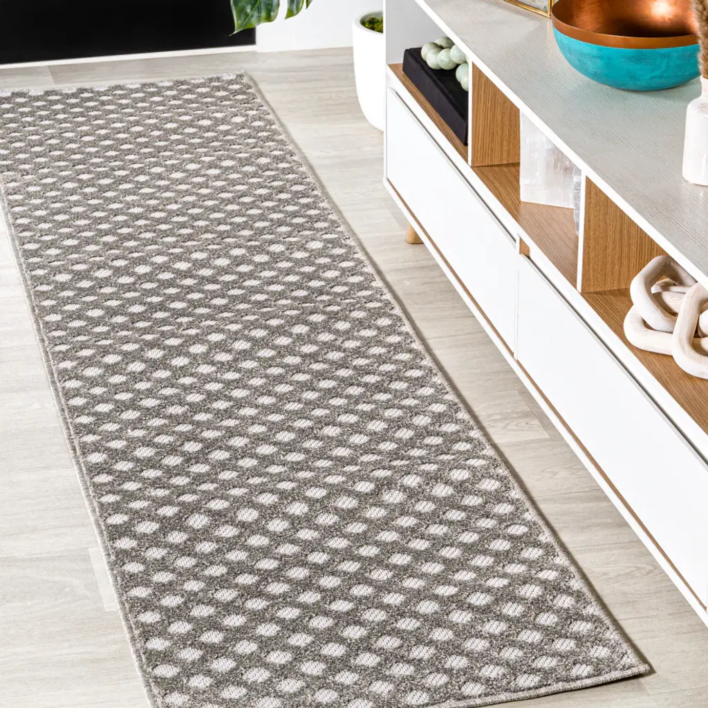 Inspired by Mediterranean garden style, our modern rug is power-loomed with a short pile. The classic diamond trellis pattern is woven all over so it''s perfect for a living room, dining room, kitchen, bedroom or entry. Add some Old World flair to your home with this easy-care rug.Features:Power loomed with a 0.31" pile that''s soft and durableThe dark gray and ivory color scheme is a modern take on neutral, graphic Moroccan rugsMade from easy-care polypropylene - just sweep, vacuum or hose down with mild soap and water100% PolypropyleneNo backing, use of rug pad is recommended (sold separately)Power Loomed in TurkiyeActual Dimension: 2 ft x 8 ft.Color: Dark Gray/IvoryThickness measures: 0.31 in.Available in multiple sizes and/or colorsRug Care:Vacuum regularly and spot clean as needed; avoid direct and continuous exposure to sunlight; use brushless vacuum; remove spills immediately; if liquid, blot with clean, undyed cloth by pressing firmly around the spill to absorb as much as possible; for hard to remove stains, professional rug cleaning is recommended; store in a dry, well ventilated area and rotate for consistent wearPacking and shipping may cause temporary creases in rugs, which will flatten out after a week on the floor; to expedite the process, try back-rolling your rug before laying it down, and then allow ample time for the remaining creases to relaxPlease Note: Due to differences in monitors, some rug colors may vary slightly. Lengths and widths may vary from the published dimensions. Patterns may vary slightly according to shape and size selected.About us:Style your floors with JONATHAN Y. By combining fine craftsmanship and design, this New York creative studio is bringing fashion to your floors. The collection mixes sustainable organic materials, vibrant colors and trend worthy styles to create JONATHAN Y''s distinctive catalog of rugs.