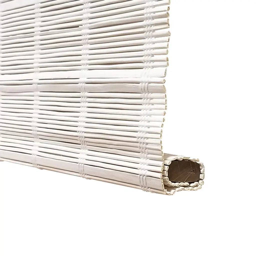 Relax the look of any room with the casual and comforting cordless White BayShore matchstick Bamboo Wood roman shade. Environmentally friendly, semi-private textured natural shades (also called natural shades, Bamboo shades, or woven woods) stylishly filter light and protect your furniture from fading. The rich wood tones of Bamboo blinds are complimentary to jute and sisal rugs as well as many hardwood floors and furniture finishes. Bamboo blinds are textured window blinds that are available in many different colors and styles. They are popular window treatments for coastal and beach properties, lakeside or country cottages, and traditional or metropolitan homes. For additional privacy or neutral backing, you can attach a fabric privacy liner to the back side of natural shades. Another option for additional privacy is to outside mount natural shades, then inside mount an inexpensive white black out roller blind.