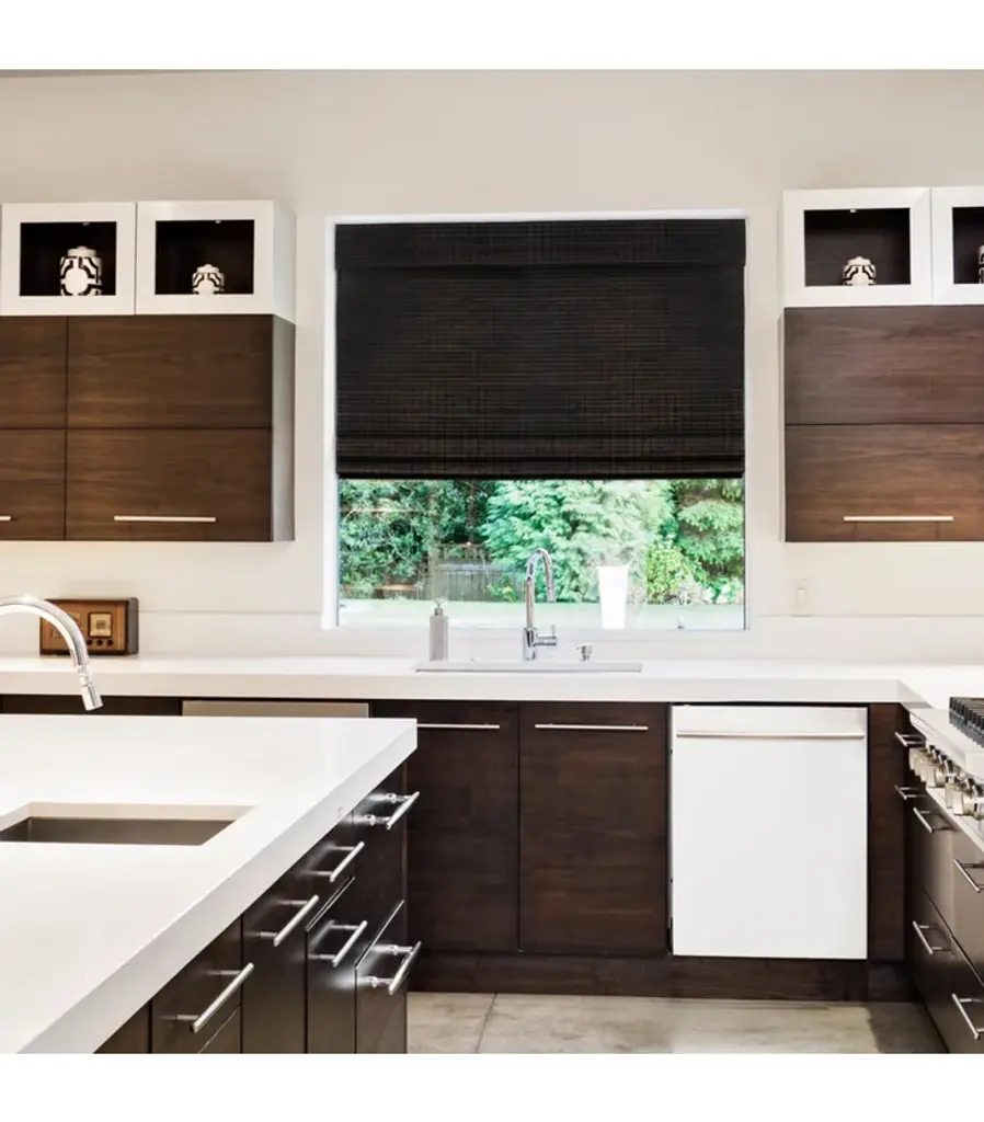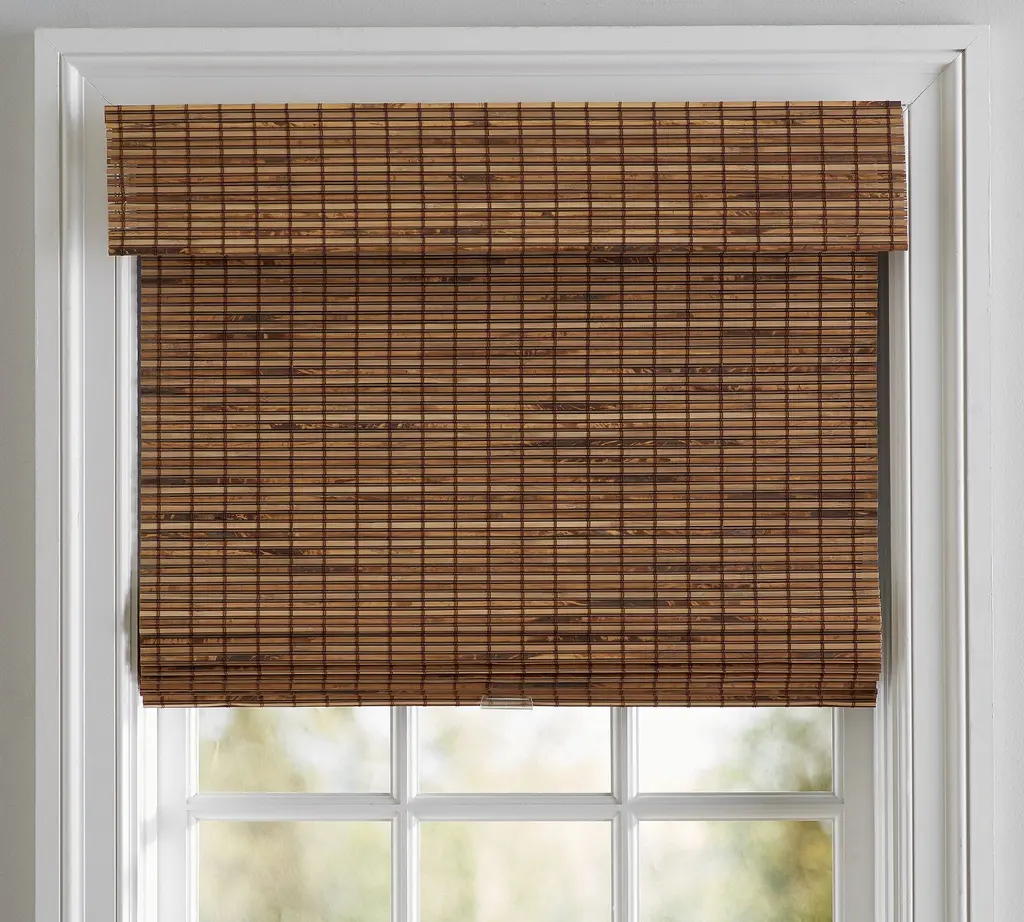 Relax the look of any room with the calm and comforting Cordless Espresso and Driftwood Flatweave Roman Shades. Environmentally friendly, private, textured natural shades (also called bamboo blinds, bamboo shades, or woven woods) stylishly reduce bright light and protect your furniture from fading. The rich wood tones of natural shades are complimentary to trending rugs as well as many hardwood floors and furniture finished. Natural shades are textured window blinds that are available in many different colors and styles. They are popular window treatments for coastal and beach properties, lakeside or country cottages, and traditional or metropolitan homes. These new Roman Shades have no cords, so they are completely safe and pose no risk to small children, a safe and stylish way to decorate your home!Features / Benefits:Certified as Best for Kids, a window covering program created by an independent lab that includes only cordless shades that are safe for kids.Natural color brings warm tones to your spaceInside/Outside Window Mount5" ValanceAvailable in 64" Drops and 72" DropsPrivacyIncludes Mounting Hardware: left and right brackets, wall anchors, and installation screwsEasy to Use Cordless OperationPull down on the bottom rail (in the center) to lower the shadePush up on the bottom rail (in the center) to raise the shadeTension Spring keep the shade locked in place when no pressure is appliedTension Spring is adjusted to each size of shade, heavier shades require more tension