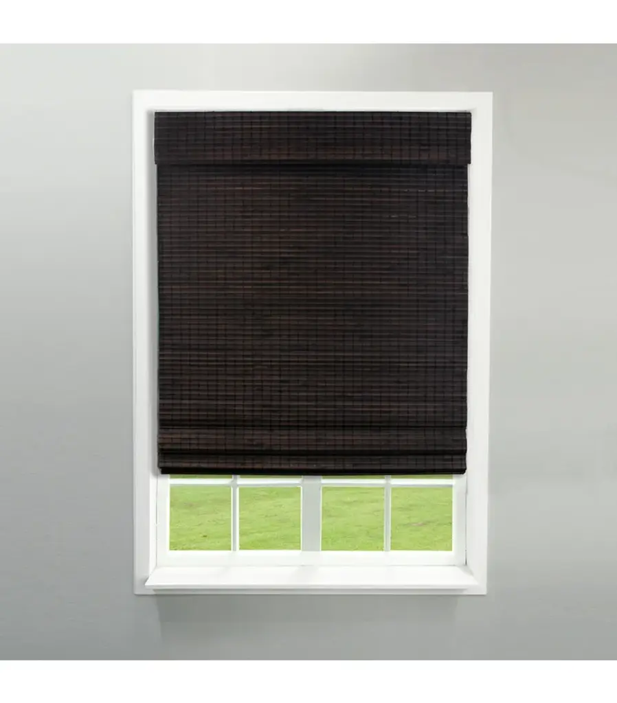 Radiance Cordless Privacy Weave Bamboo Roman Shade, Espresso, 29"x64"