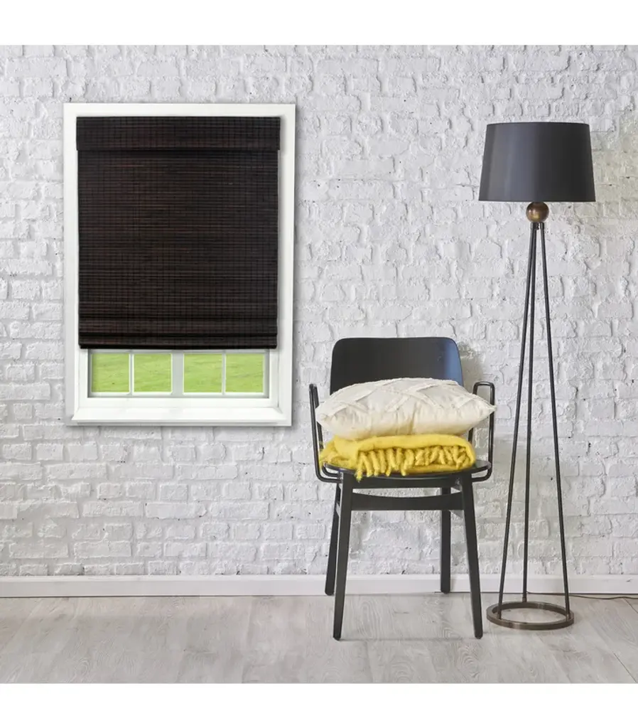 Radiance Cordless Privacy Weave Bamboo Roman Shade, Espresso, 31"x64"