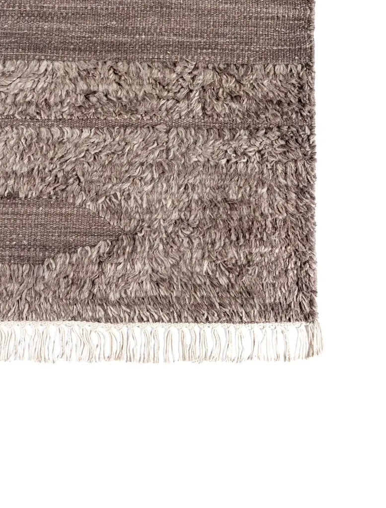 The thick, shaggy feel of Turkish Tulu rugs inspired this design. Handwoven of undyed wool, it derives its abstract motif from the contrasts of the high and low pile. Walking barefoot on this rug is a pleasure! A rug pad is recommended to extend the life of your rug and keep it in place.