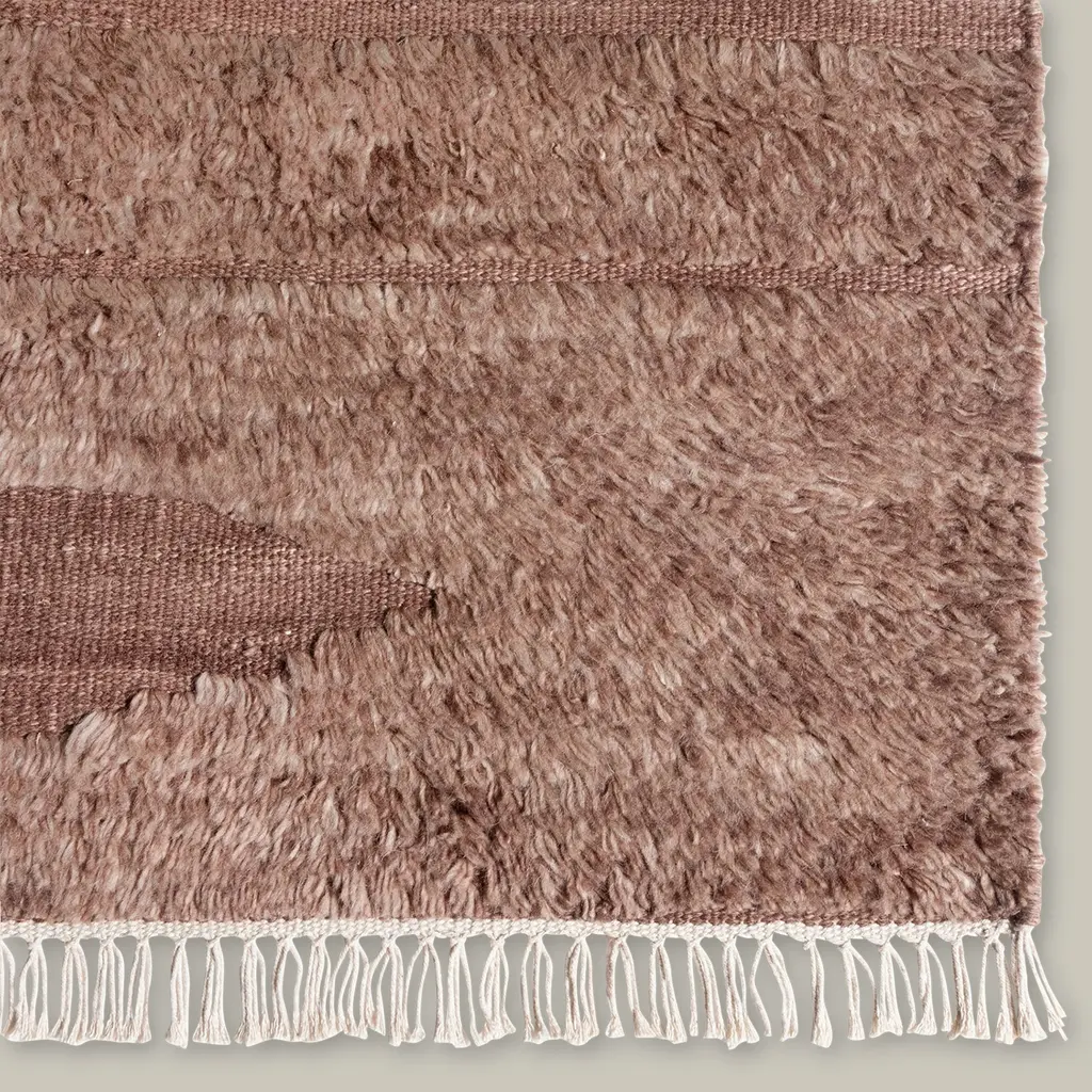 Inspired by the beauty of sun-aged natural elements, the Rafalla Collection honors the abstract beauty of a stark landscape. Handmade with natural, undyed wool and inspired by wonderfully shaggy Tulu rugs, this line features a high-low pile that feels rich underfoot. These textured pieces lend a grounding influence to any space they’re placed in.