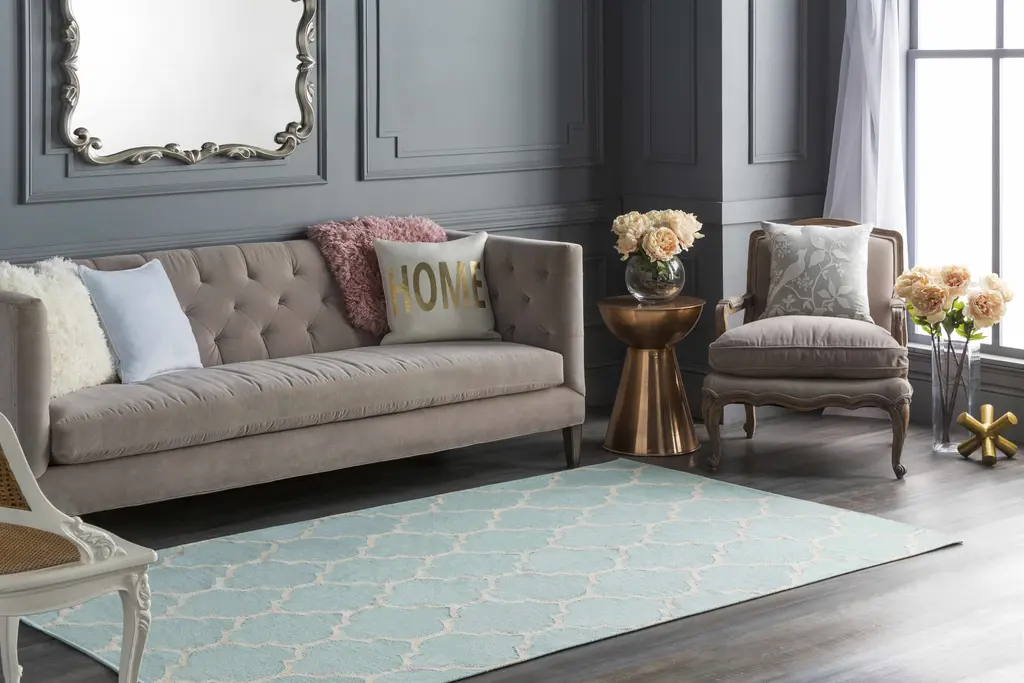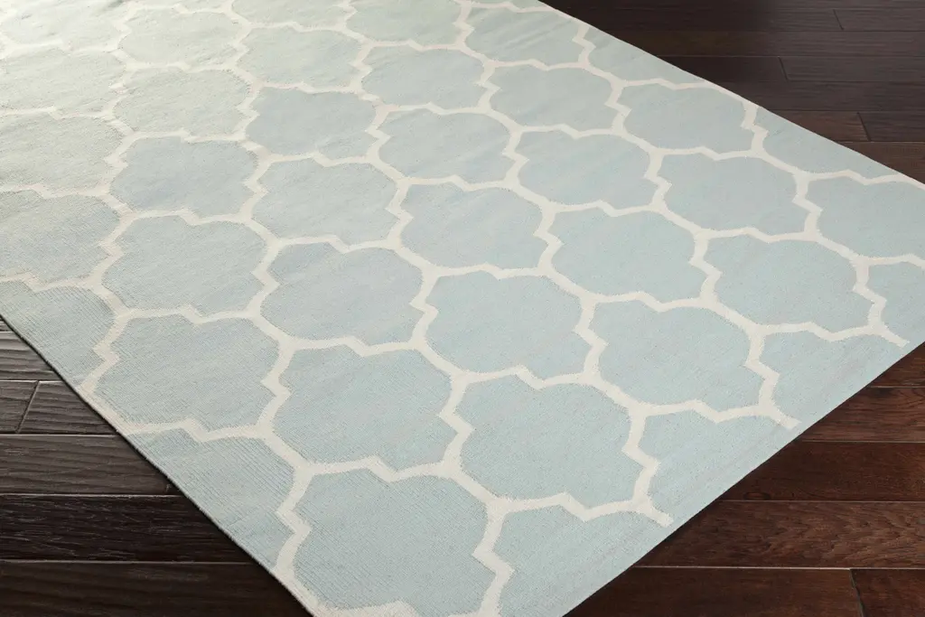 Ragan Ice Blue Trellis Cotton Rug - Clearance - 5' X 8' Rectangle