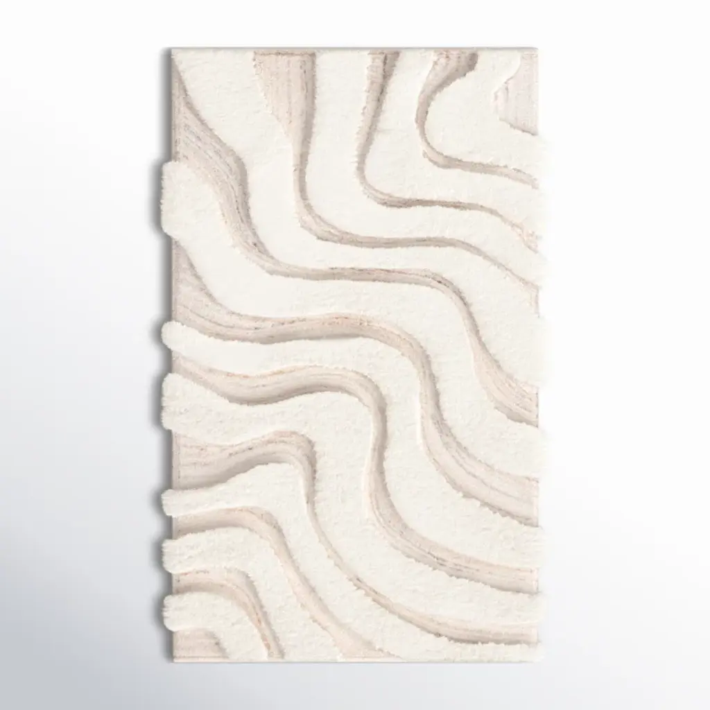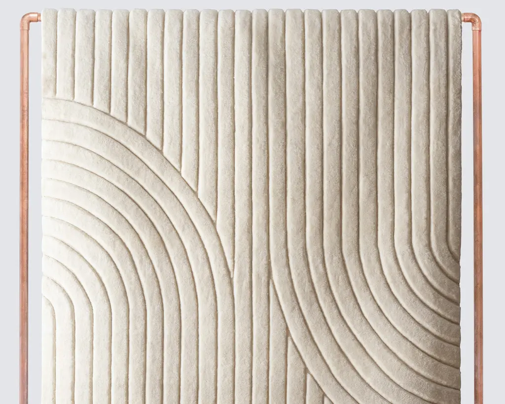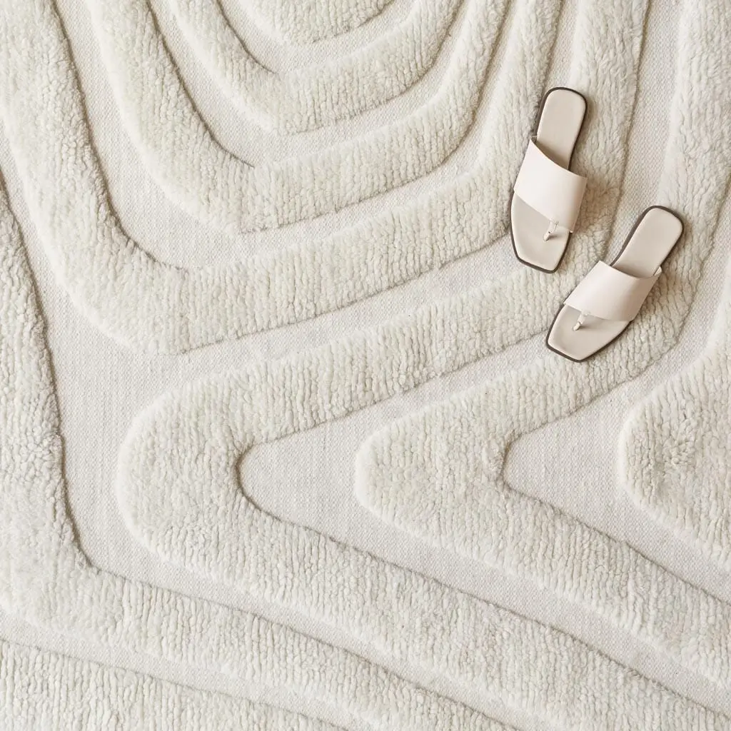 Designed with an organic, artful pattern of contrasting pile heights, this textured wool rug always make a statement. The organic, irregular pattern of this wool rug create a bold statement that adds a pop of personality to any space. As dynamic as it is calming, each piece is hand-knotted with a textured, touchable pile that plays nicely with any decor. Hand-knotted by a collective of 200 weavers in Panipat, one of India's historic hubs for rug making, each one takes days to complete. Every rug is Oeko-Tex® certified and made sustainably in a fair trade environment. We recommend using a RUG PAD to prevent wrinkles and slippage. Also available as an ACCENT RUG. Unsure of what size rug you need? Visit our rug size and style guide for more information. NOTE: This rug is a high-pile rug, with a 3/4" pile height. Be sure to measure for door clearance.