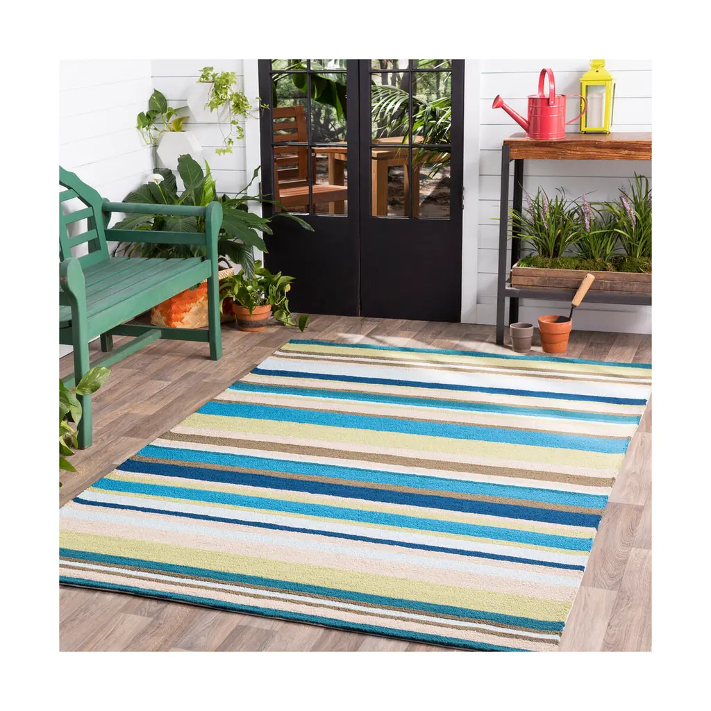 Rain 96 Inch Lime/teal/dark Brown/taupe/pale Blue/navy Outdoor Rug, Polypropylene